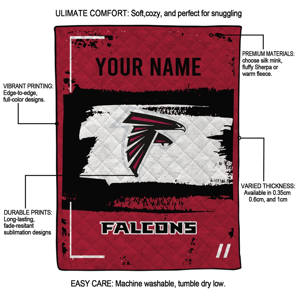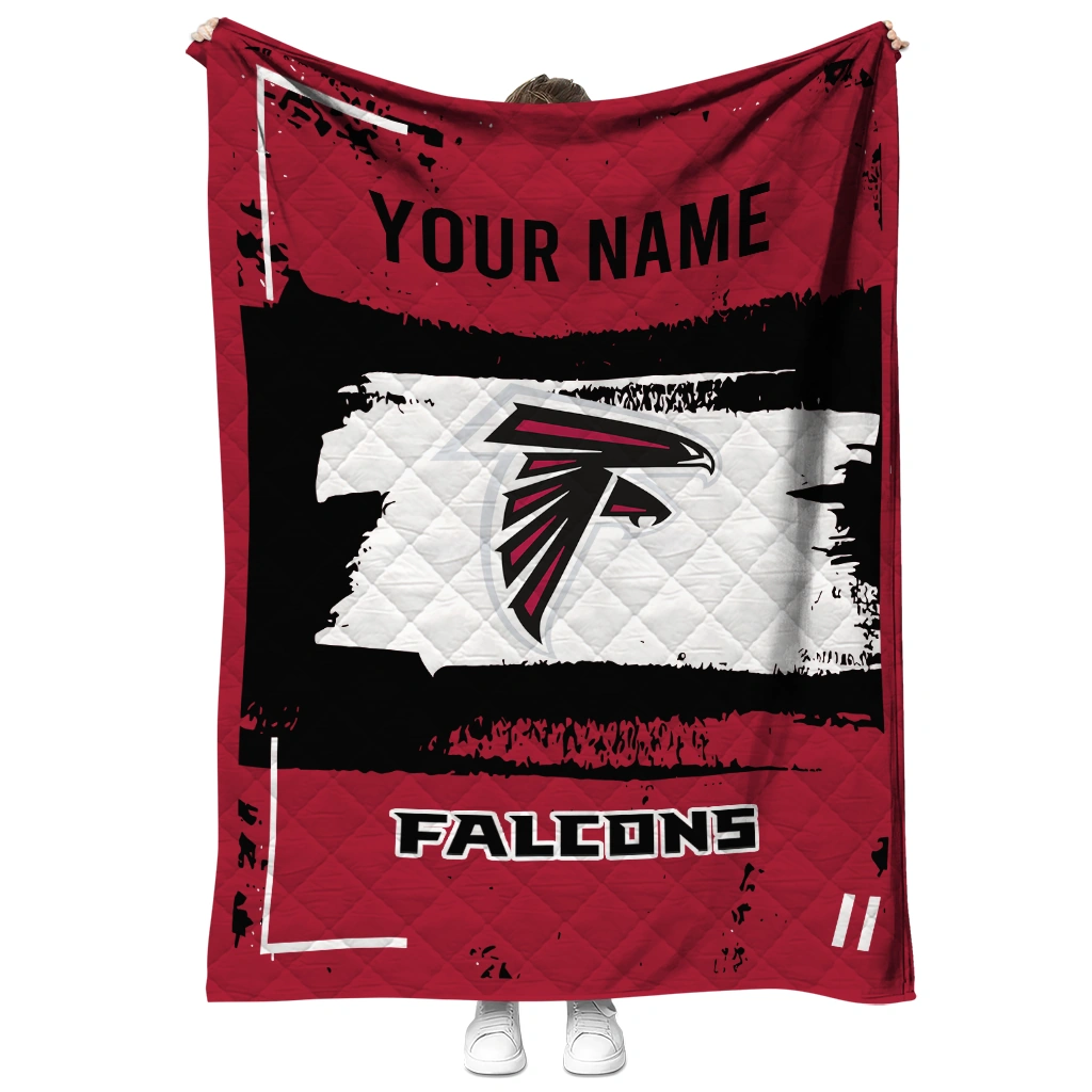 Wrap yourself in warmth and pride with the Personalized Atlanta Falcons Grunge Patch Red White Quilt Blanket from the Atlanta Falcons Blankets collection at Yes That Blanket. Made from 100% premium quilting-weight polyester blended with a touch of microfiber, this quilt offers a smooth, soft finish you’ll love. Choose between two quilting styles—Stipple or Diagonal—and enjoy the comfort of a cotton-filled layer inside that adds extra coziness for every season. The border is available in classic black or white, giving your design a clean, timeless edge.
