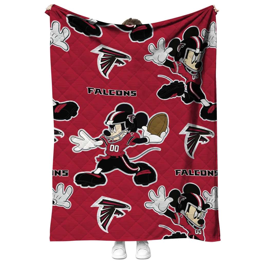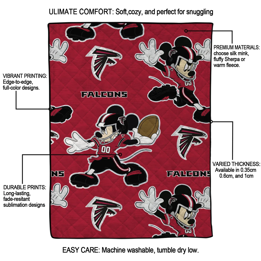 Wrap yourself in warmth and pride with the Personalized Atlanta Falcons Mickey Football Red Quilt Blanket from the Atlanta Falcons Blankets collection at Yes That Blanket. Made from 100% premium quilting-weight polyester blended with a touch of microfiber, this quilt offers a smooth, soft finish you’ll love. Choose between two quilting styles—Stipple or Diagonal—and enjoy the comfort of a cotton-filled layer inside that adds extra coziness for every season. The border is available in classic black or white, giving your design a clean, timeless edge.
