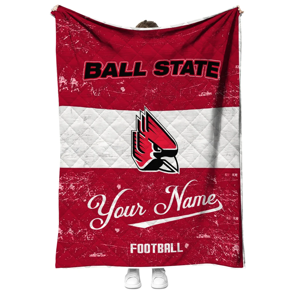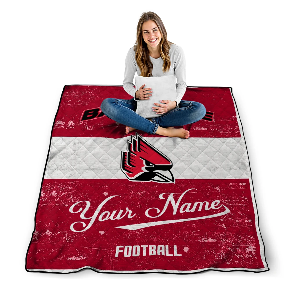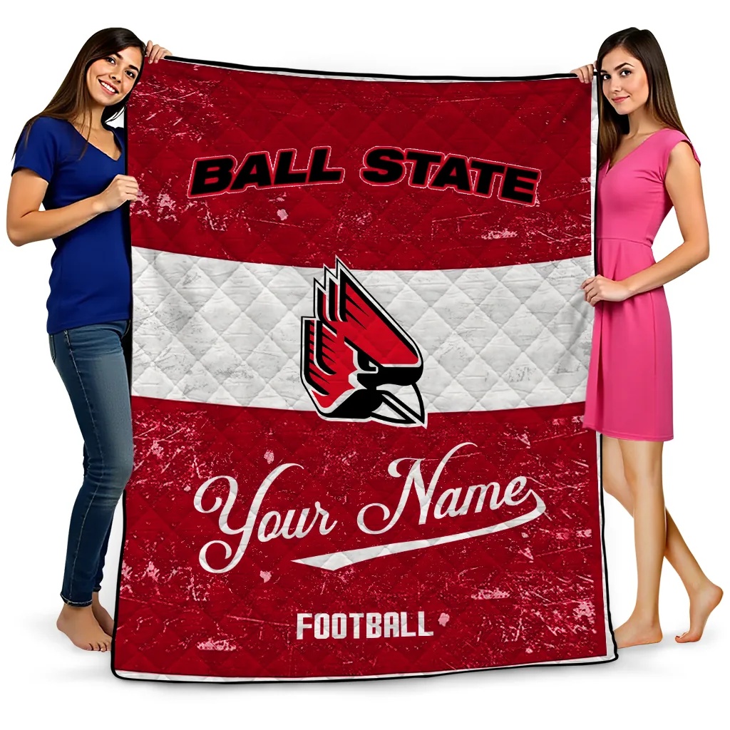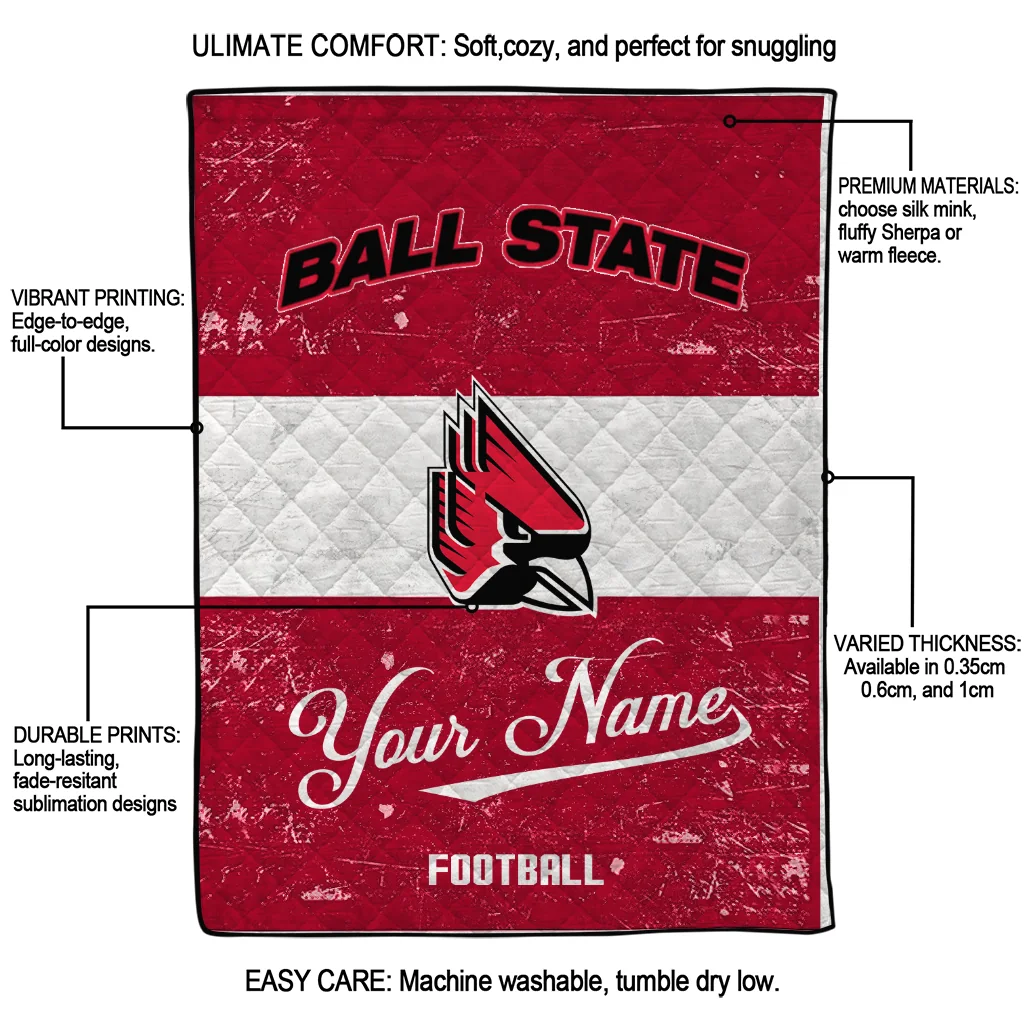 Personalized Ball State Cardinals Hibiscus Burst Red White Quilt Blanket