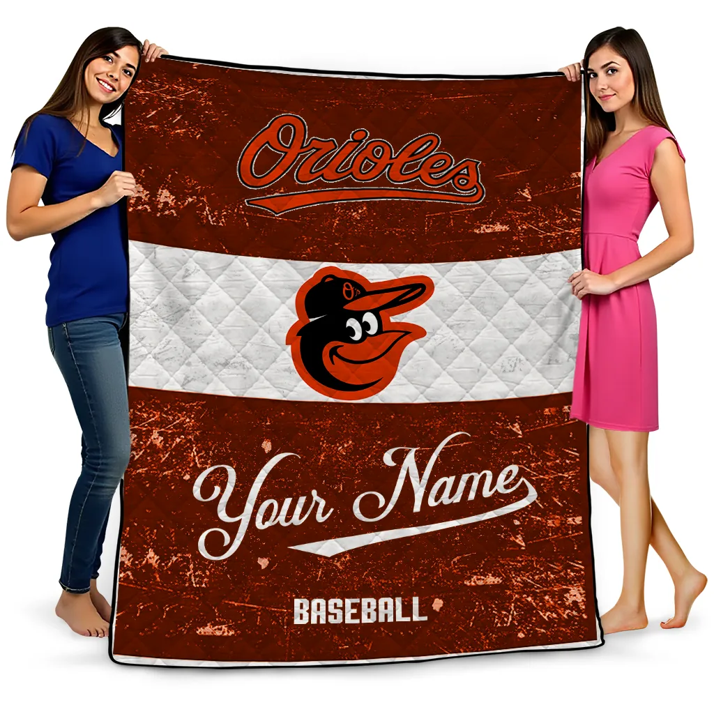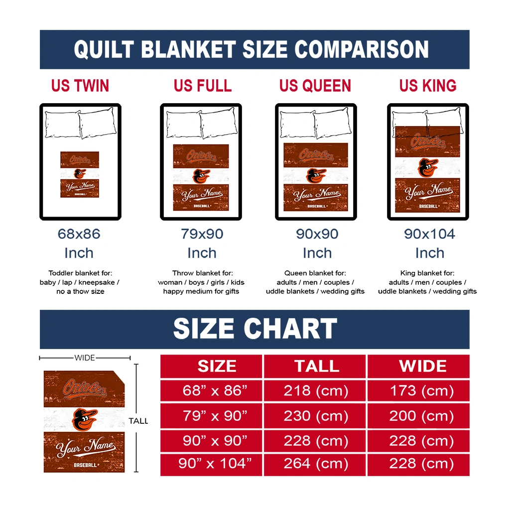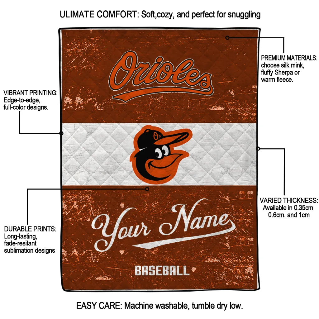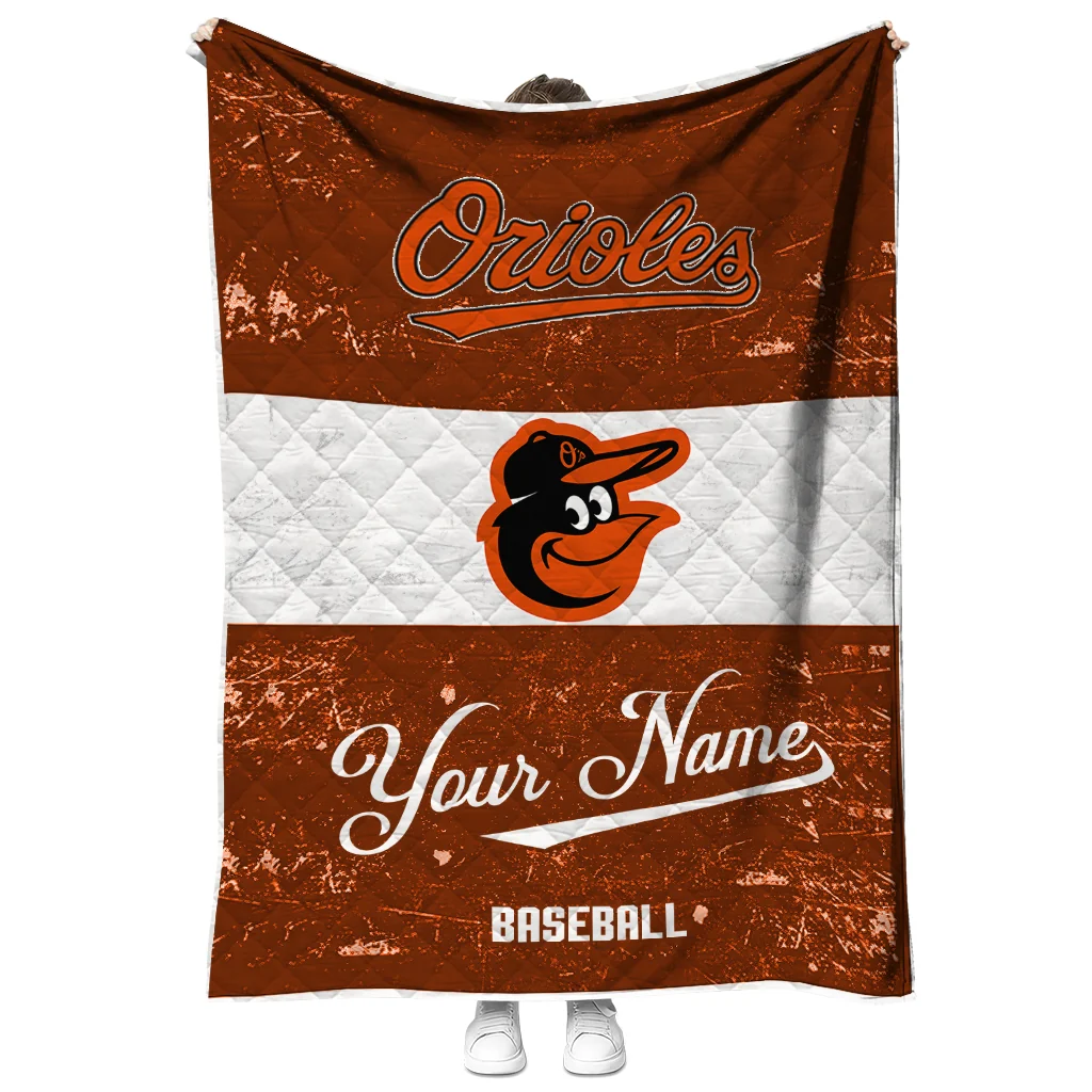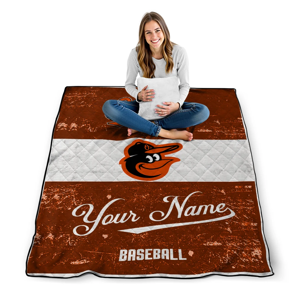 Wrap yourself in warmth and pride with the Personalized Baltimore Orioles Snoopy Victory Orange White Quilt Blanket from the Baltimore Orioles Blankets collection at Yes That Blanket. Made from 100% premium quilting-weight polyester blended with a touch of microfiber, this quilt offers a smooth, soft finish you’ll love. Choose between two quilting styles—Stipple or Diagonal—and enjoy the comfort of a cotton-filled layer inside that adds extra coziness for every season. The border is available in classic black or white, giving your design a clean, timeless edge.