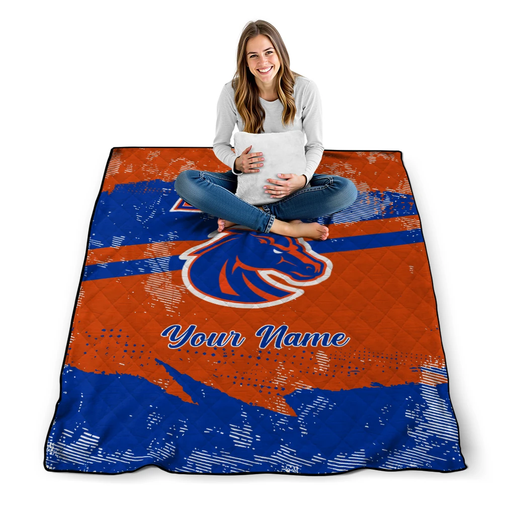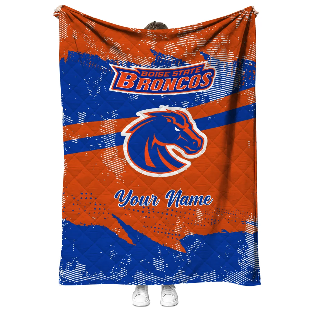 Wrap yourself in warmth and pride with the Personalized Boise State Broncos Brushstroke Layers Orange Quilt Blanket from the Boise State Broncos Blankets collection at Yes That Blanket. Made from 100% premium quilting-weight polyester blended with a touch of microfiber, this quilt offers a smooth, soft finish you’ll love. Choose between two quilting styles—Stipple or Diagonal—and enjoy the comfort of a cotton-filled layer inside that adds extra coziness for every season. The border is available in classic black or white, giving your design a clean, timeless edge.