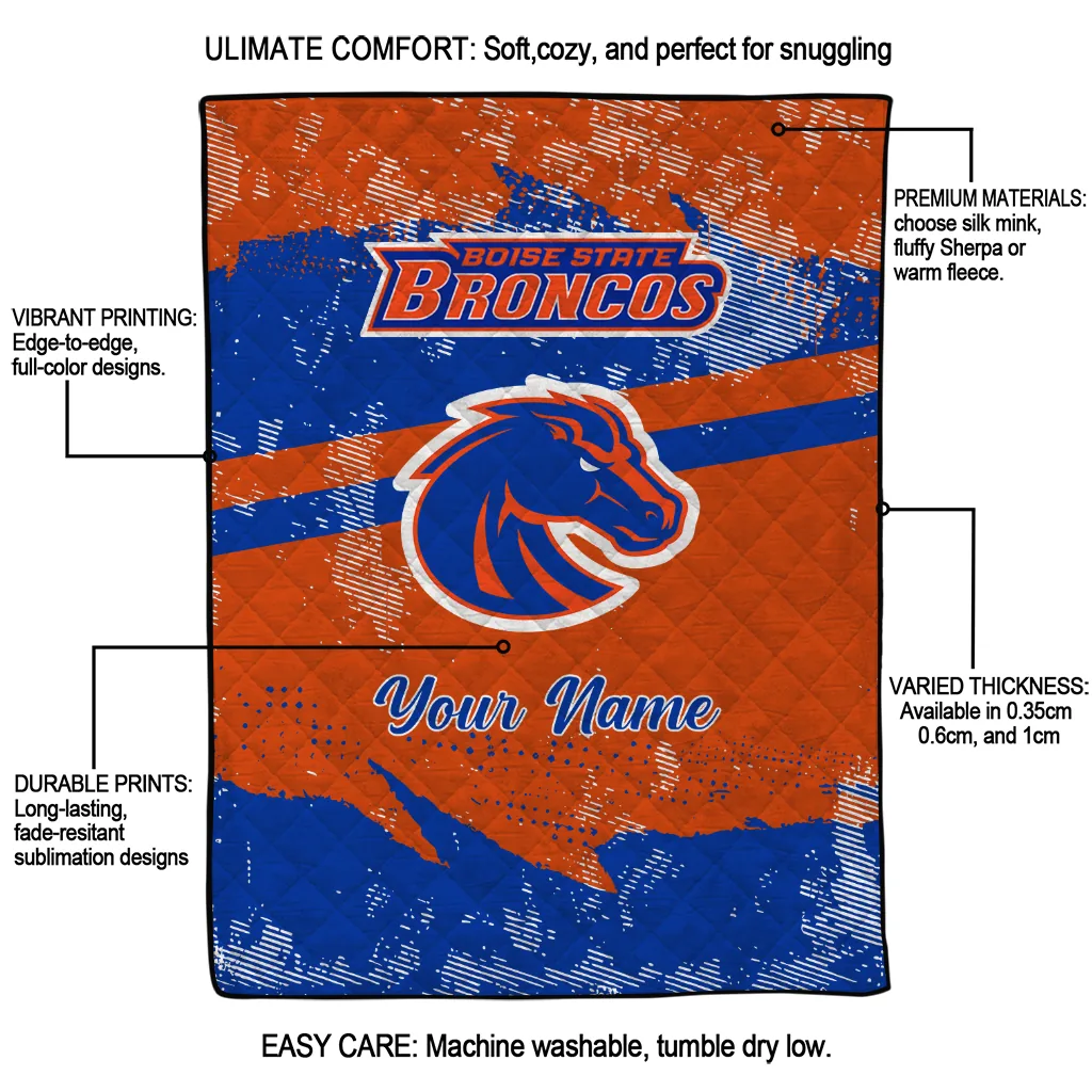 Personalized Boise State Broncos Brushstroke Layers Orange Quilt Blanket