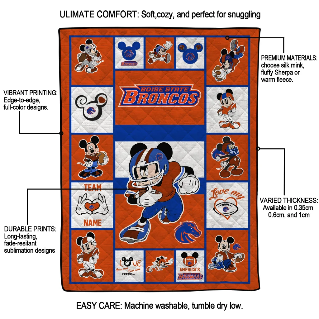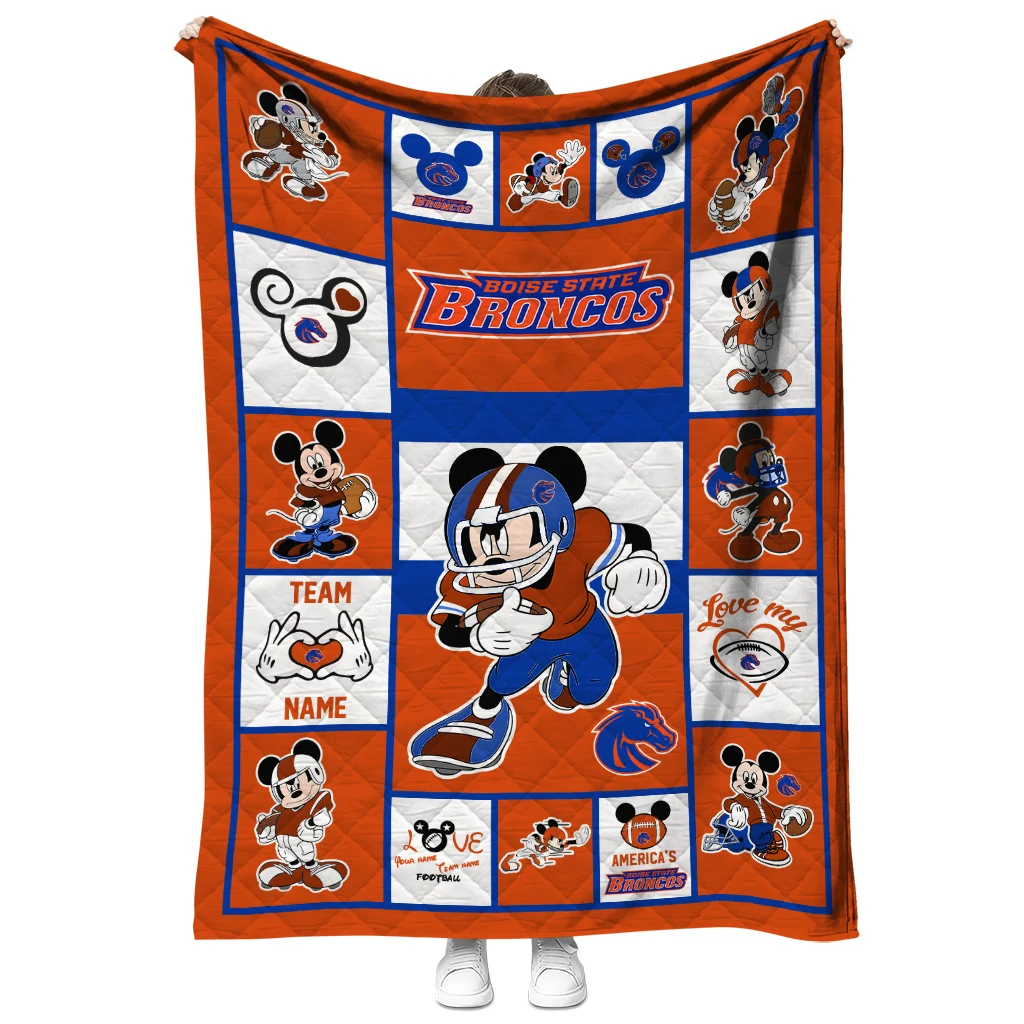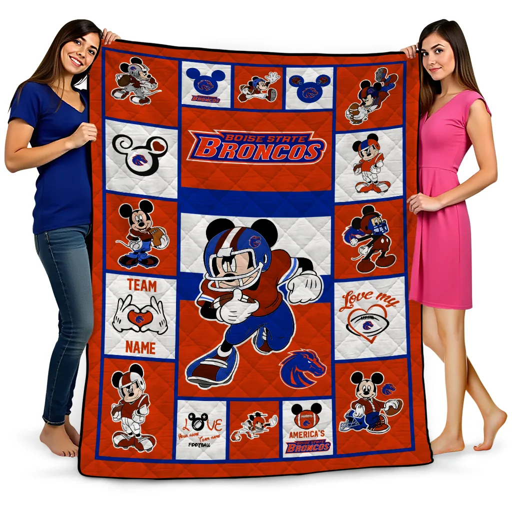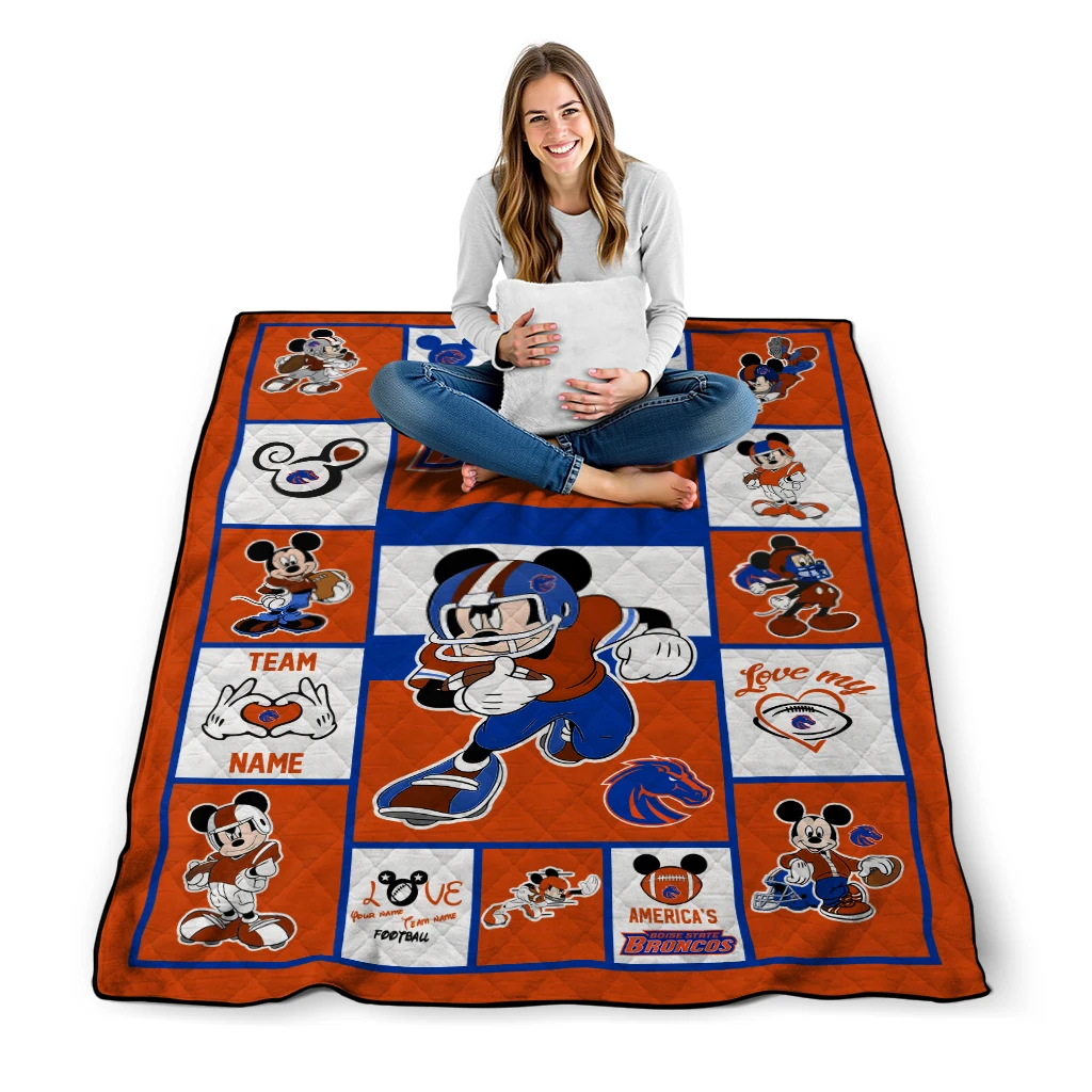 Personalized Boise State Broncos Mickey Crimson Orange White Quilt Blanket