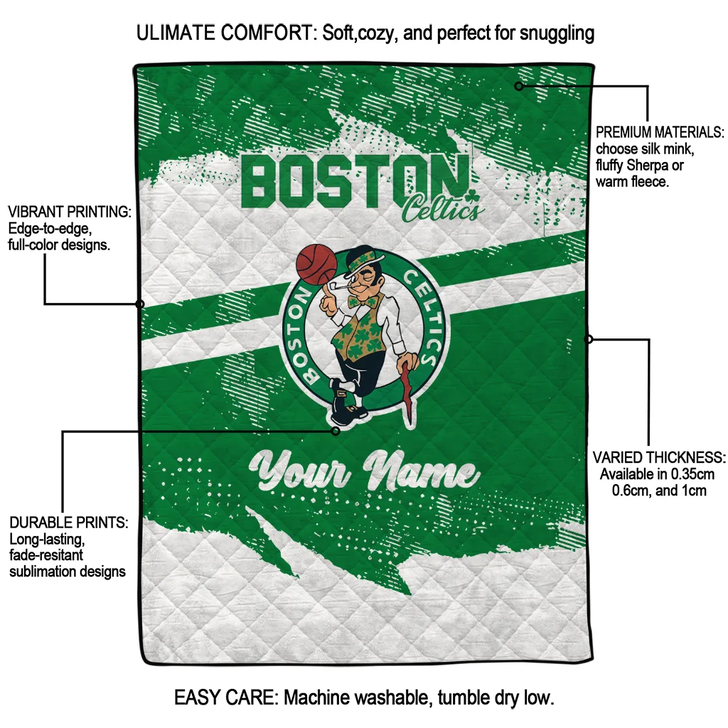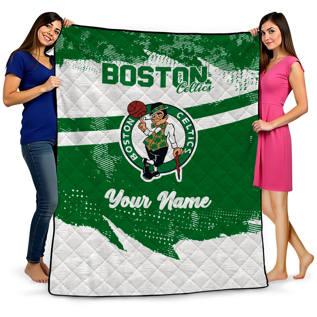 Personalized Boston Celtics Brushstroke Layers Green Quilt Blanket