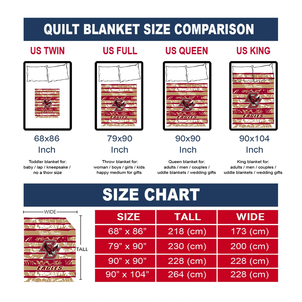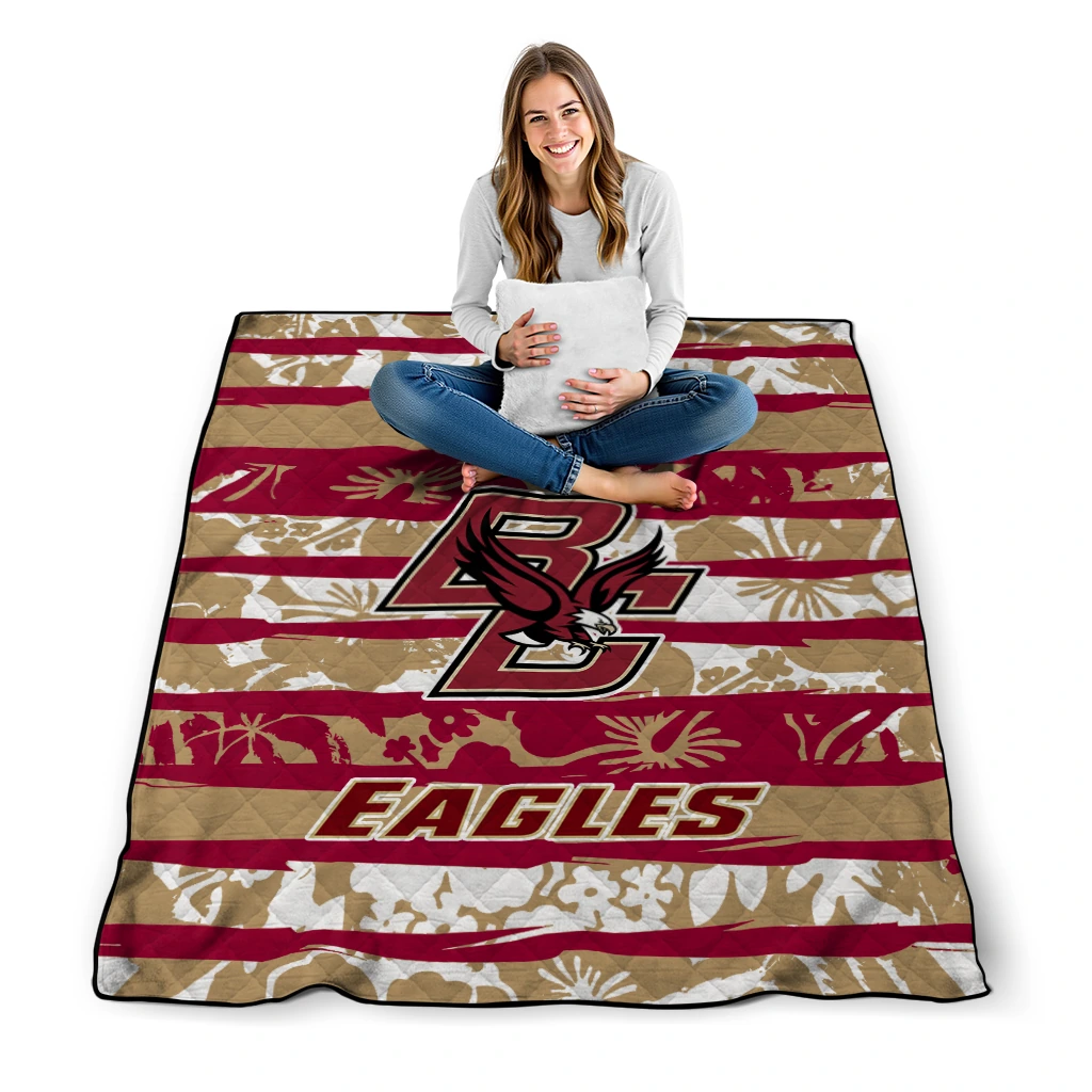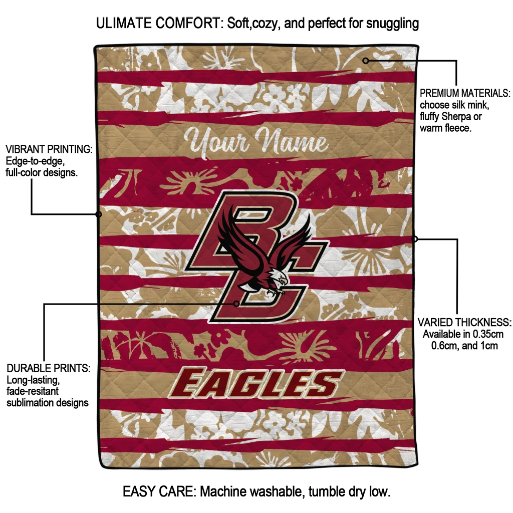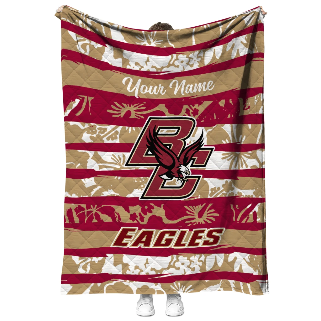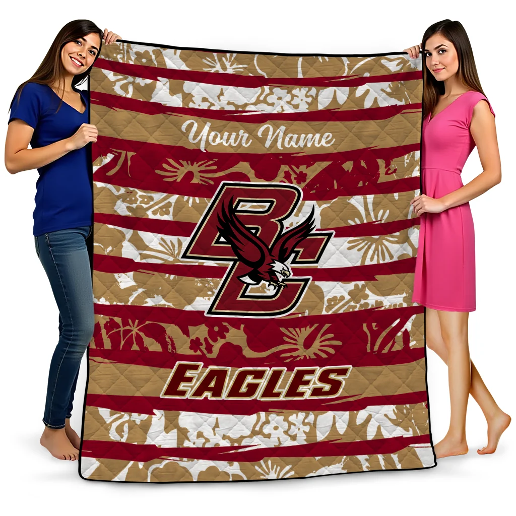 Personalized Boston College Eagles Layered Florals Maroon White Quilt Blanket