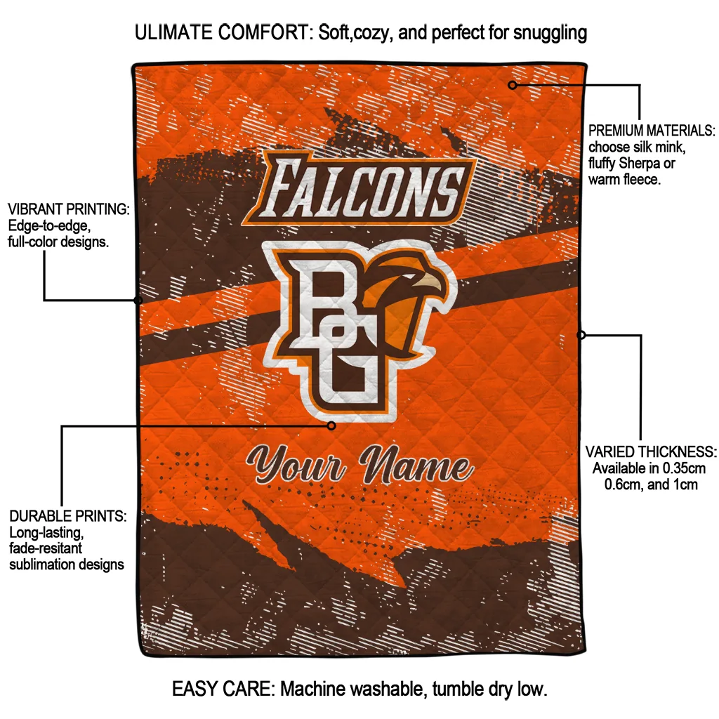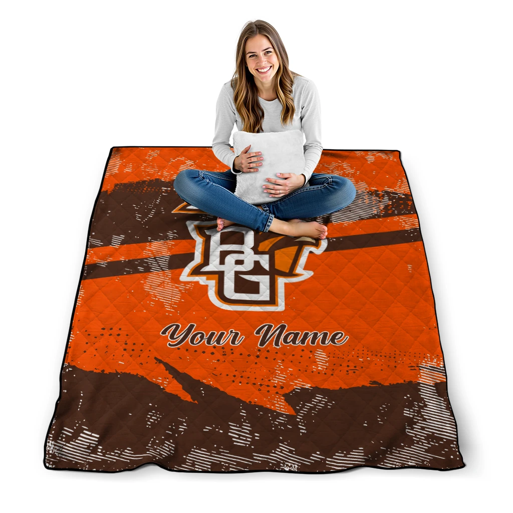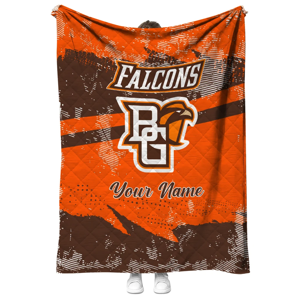 Personalized Bowling Green Falcons Brushstroke Layers Orange Quilt Blanket