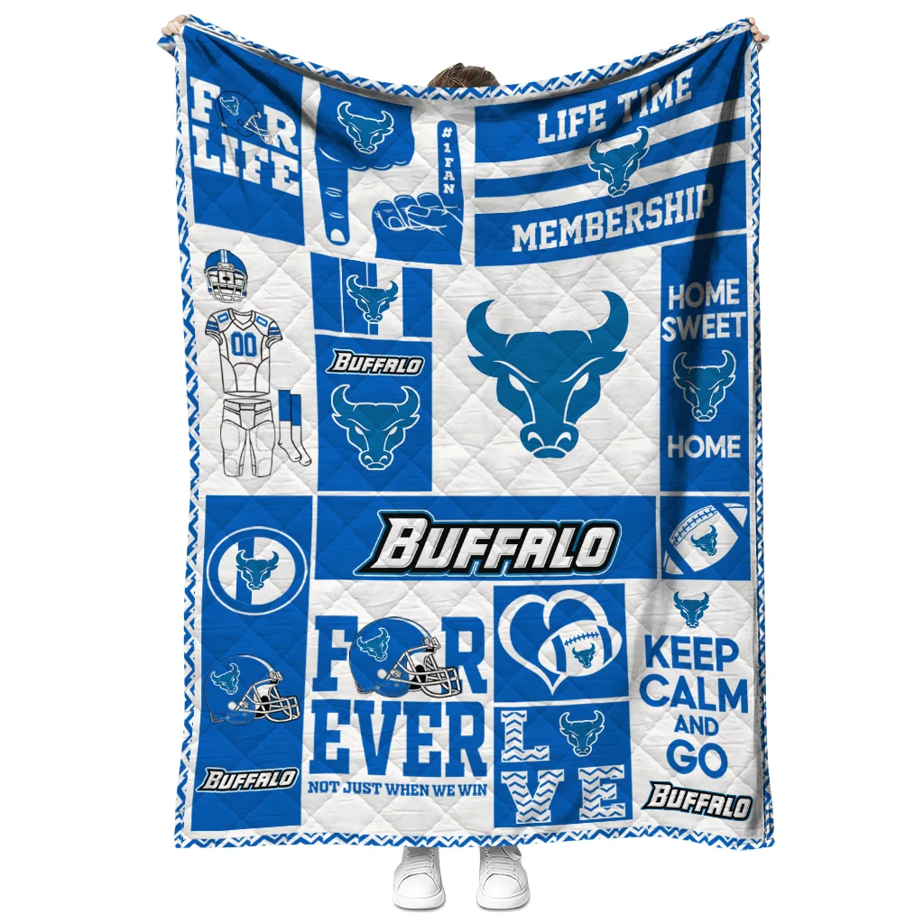 The Personalized Buffalo Bulls Helmet Passion Royal Blue Quilt Blanket is more than a blanket—it’s everyday comfort, thoughtfully made. Crafted from premium quilting fabric with a soft microfiber touch, it offers a smooth hand-feel and lasting coziness. Layered quilting with a cotton-filled core provides adaptable warmth across seasons while maintaining a clean, tailored look on your bed or sofa.