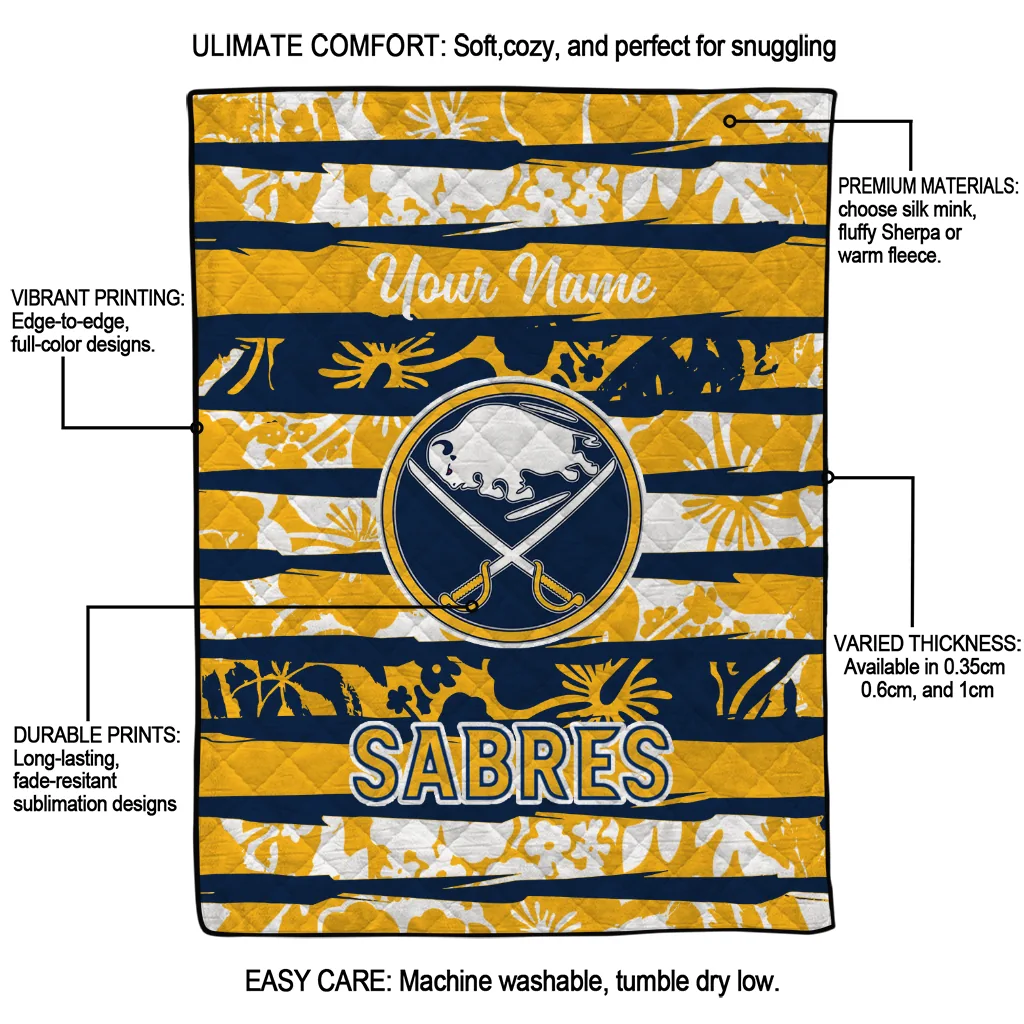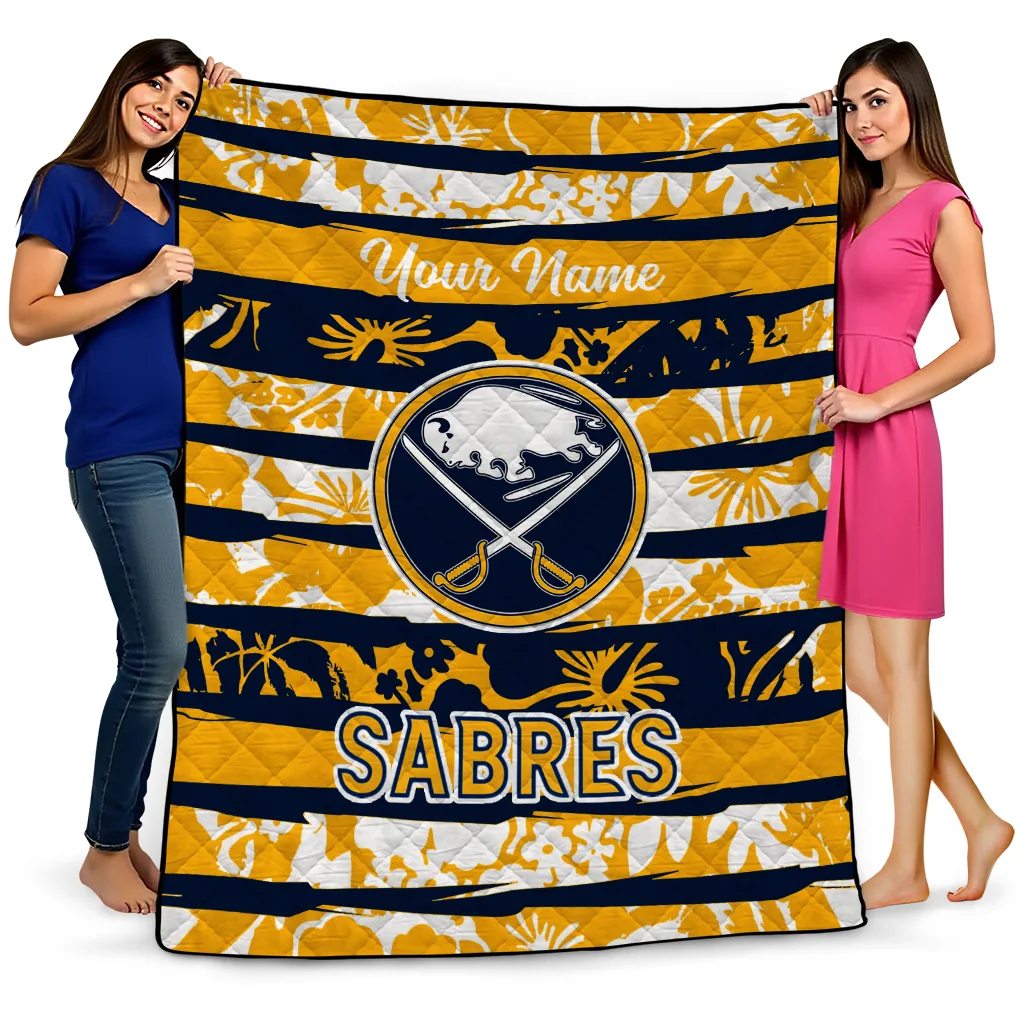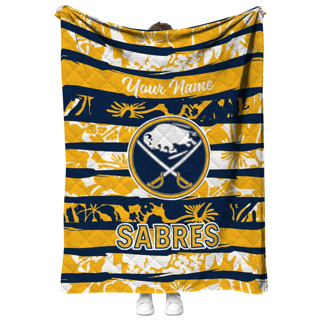 Wrap yourself in warmth and pride with the Personalized Buffalo Sabres Layered Florals Navy Blue White Quilt Blanket from the Buffalo Sabres Blankets collection at Yes That Blanket. Made from 100% premium quilting-weight polyester blended with a touch of microfiber, this quilt offers a smooth, soft finish you’ll love. Choose between two quilting styles—Stipple or Diagonal—and enjoy the comfort of a cotton-filled layer inside that adds extra coziness for every season. The border is available in classic black or white, giving your design a clean, timeless edge.