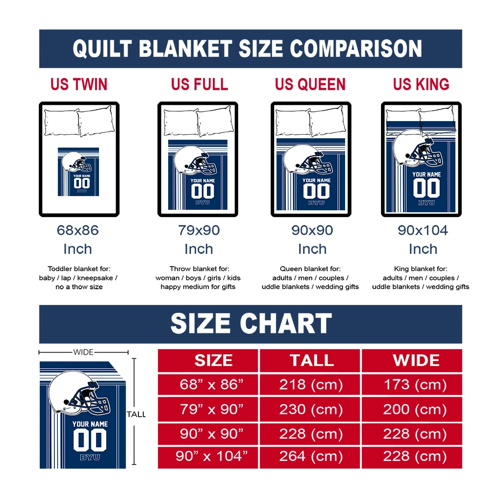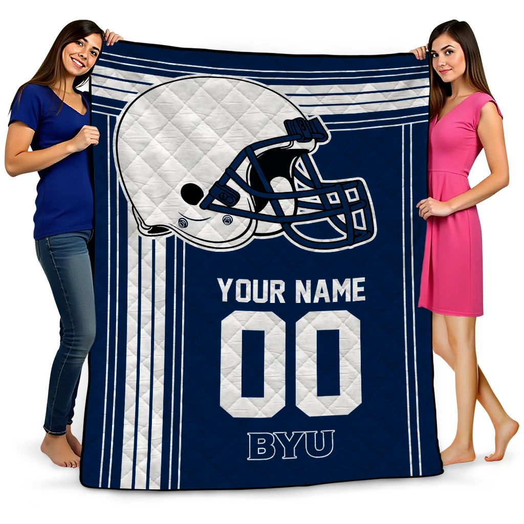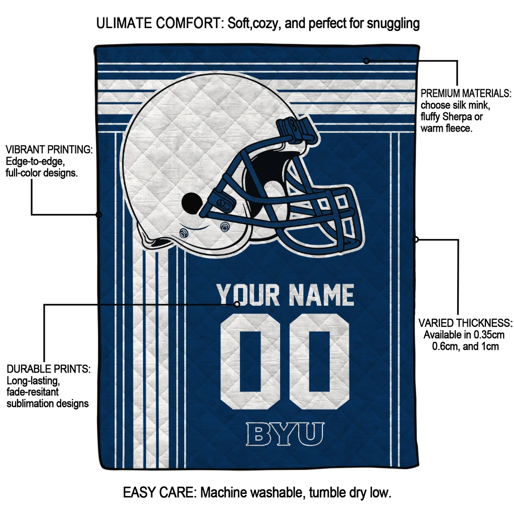 Personalized BYU Cougars Helmet Theme Blue Quilt Blanket