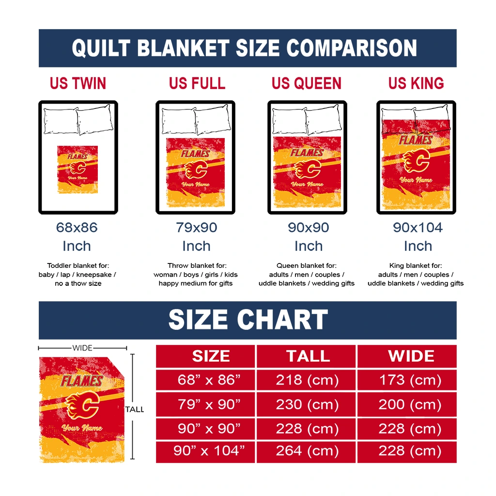 The Personalized Calgary Flames Brushstroke Layers Red Quilt Blanket is more than a blanket—it’s everyday comfort, thoughtfully made. Crafted from premium quilting fabric with a soft microfiber touch, it offers a smooth hand-feel and lasting coziness. Layered quilting with a cotton-filled core provides adaptable warmth across seasons while maintaining a clean, tailored look on your bed or sofa.