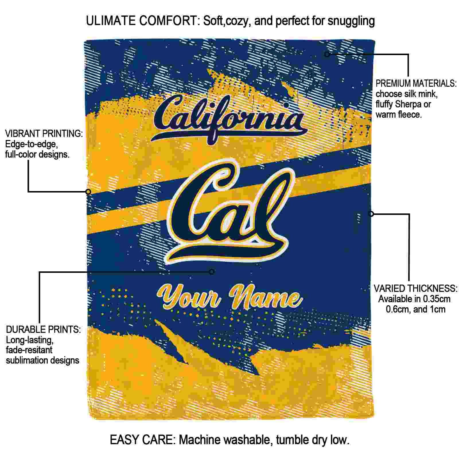 Personalized California Golden Bears Grunge Streaks Blue Blanket