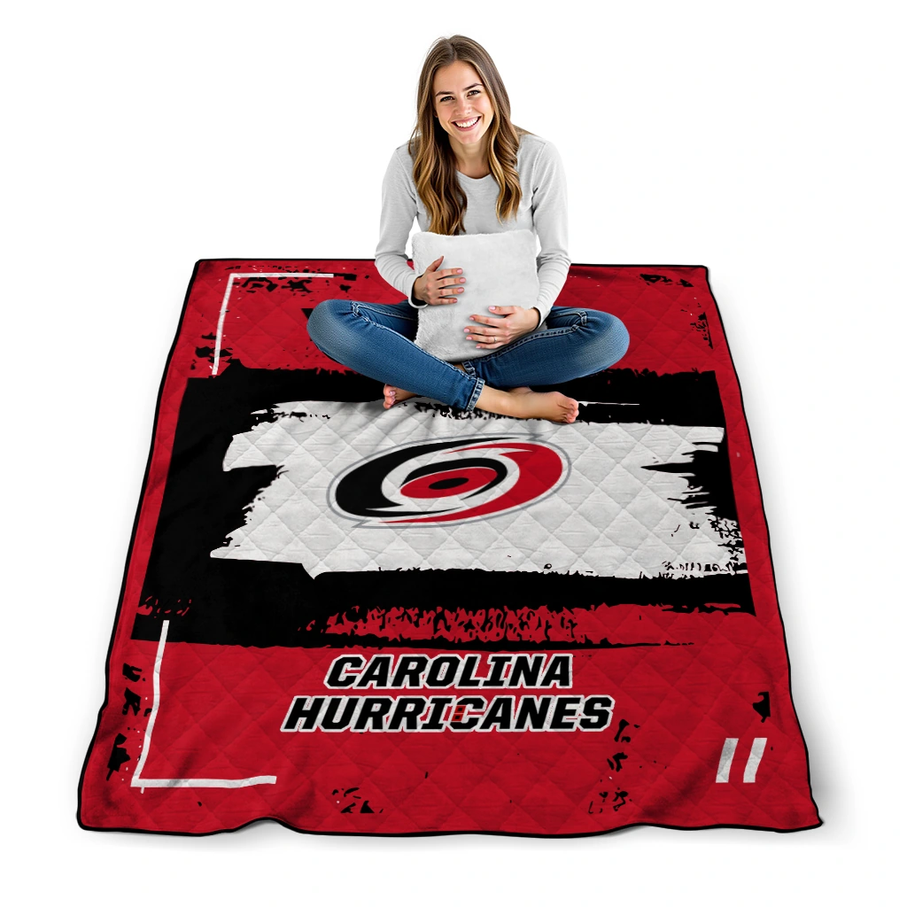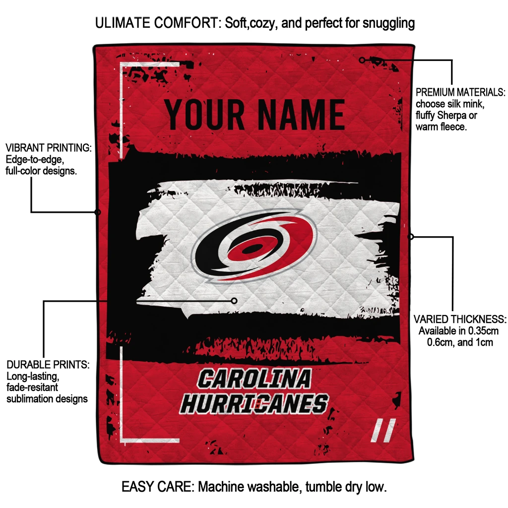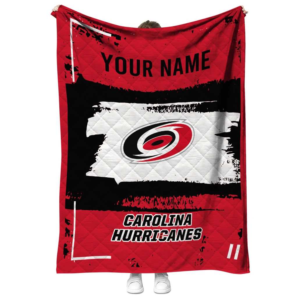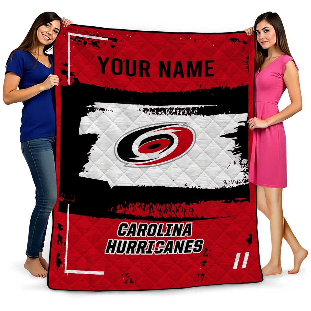 Personalized Carolina Hurricanes Grunge Patch Red White Quilt Blanket