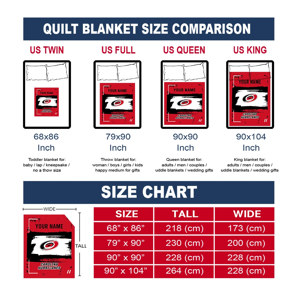 Wrap yourself in warmth and pride with the Personalized Carolina Hurricanes Grunge Patch Red White Quilt Blanket from the Carolina Hurricanes Blankets collection at Yes That Blanket. Made from 100% premium quilting-weight polyester blended with a touch of microfiber, this quilt offers a smooth, soft finish you’ll love. Choose between two quilting styles—Stipple or Diagonal—and enjoy the comfort of a cotton-filled layer inside that adds extra coziness for every season. The border is available in classic black or white, giving your design a clean, timeless edge.