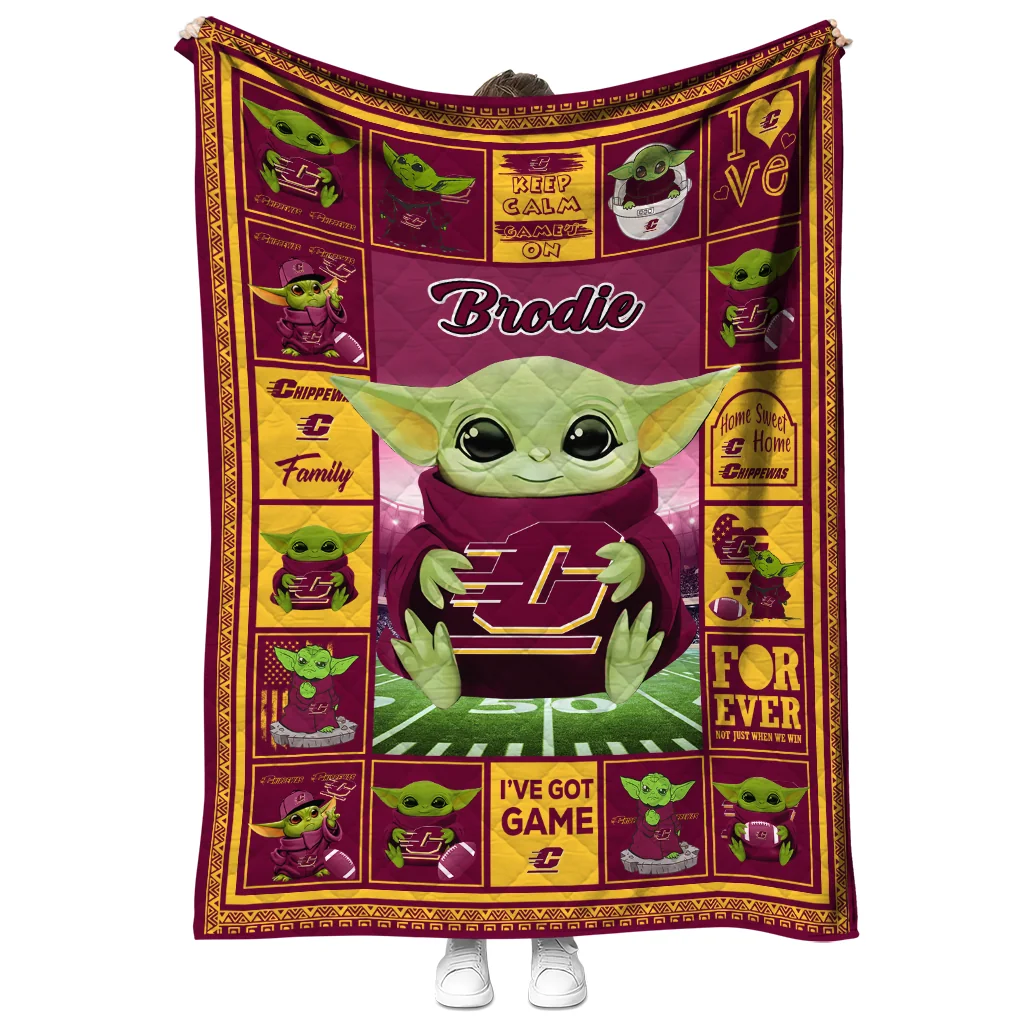 Personalized Central Michigan Chippewas Yody Baby Pattern Maroon Quilt Blanket
