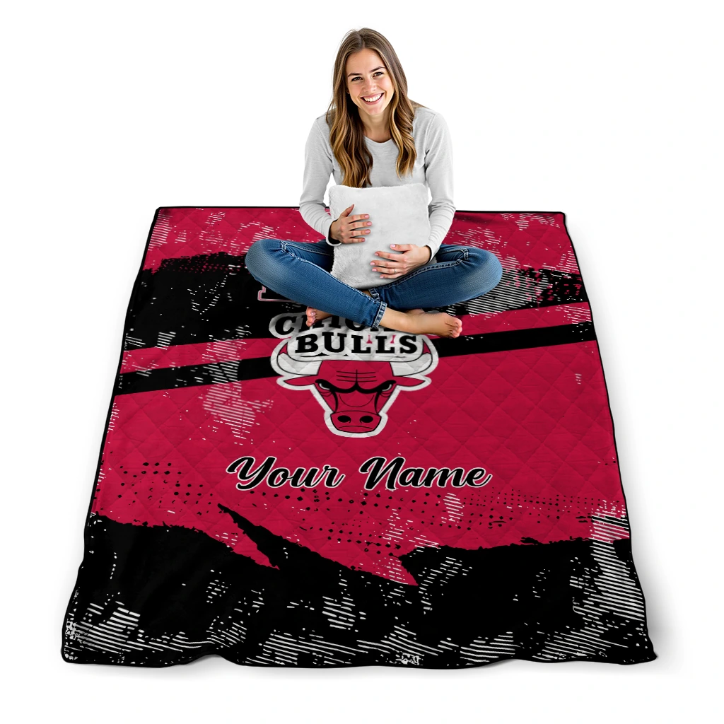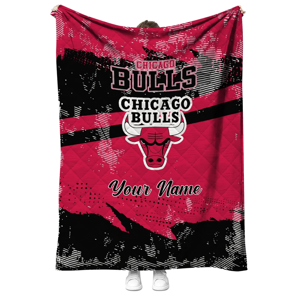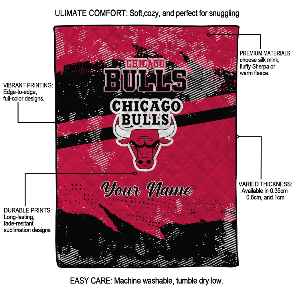Wrap yourself in warmth and pride with the Personalized Chicago Bulls Brushstroke Layers Red Quilt Blanket from the Chicago Bulls Blankets collection at Yes That Blanket. Made from 100% premium quilting-weight polyester blended with a touch of microfiber, this quilt offers a smooth, soft finish you’ll love. Choose between two quilting styles—Stipple or Diagonal—and enjoy the comfort of a cotton-filled layer inside that adds extra coziness for every season. The border is available in classic black or white, giving your design a clean, timeless edge.