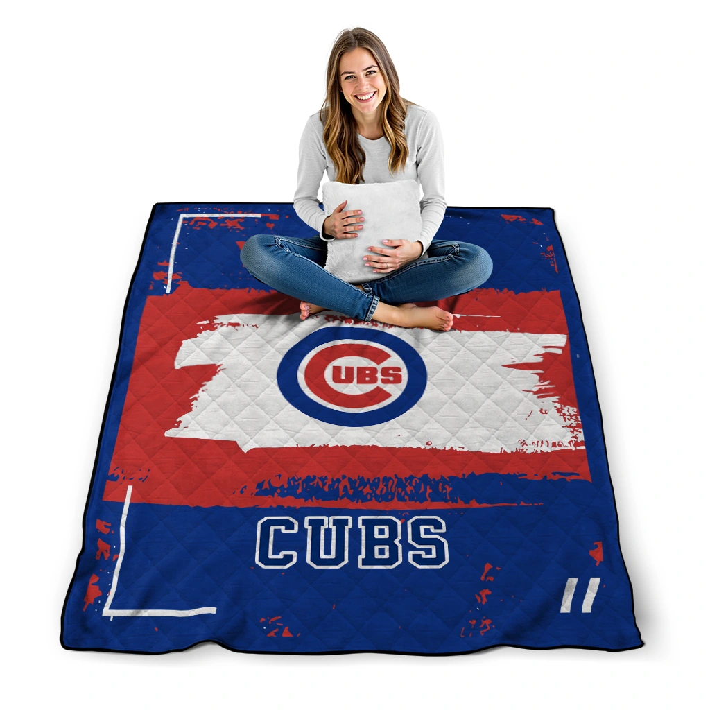 Personalized Chicago Cubs Grunge Patch Blue White Quilt Blanket