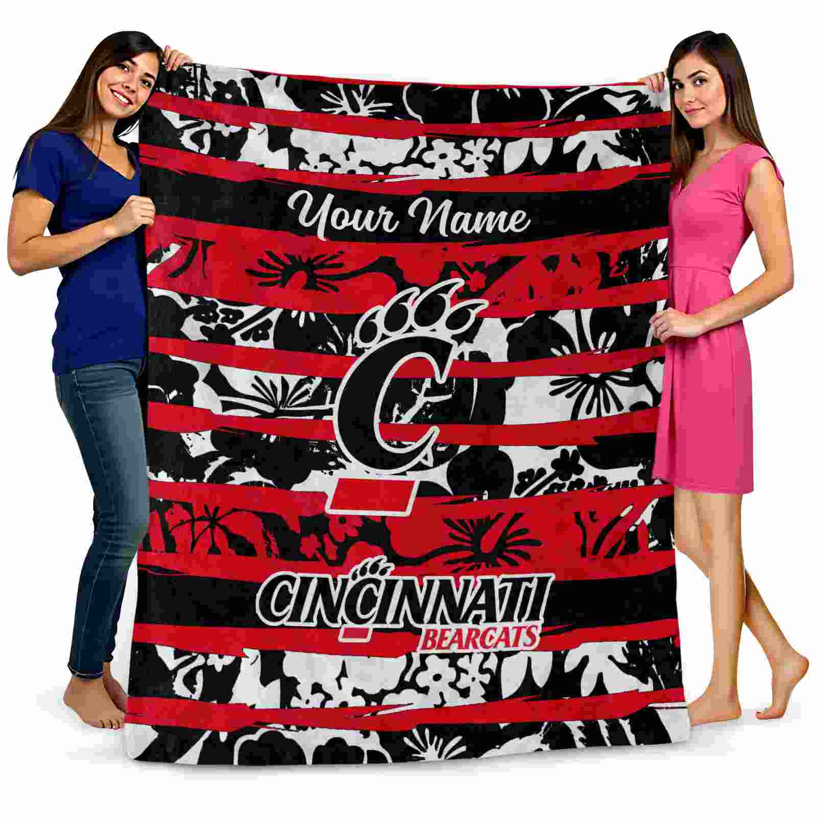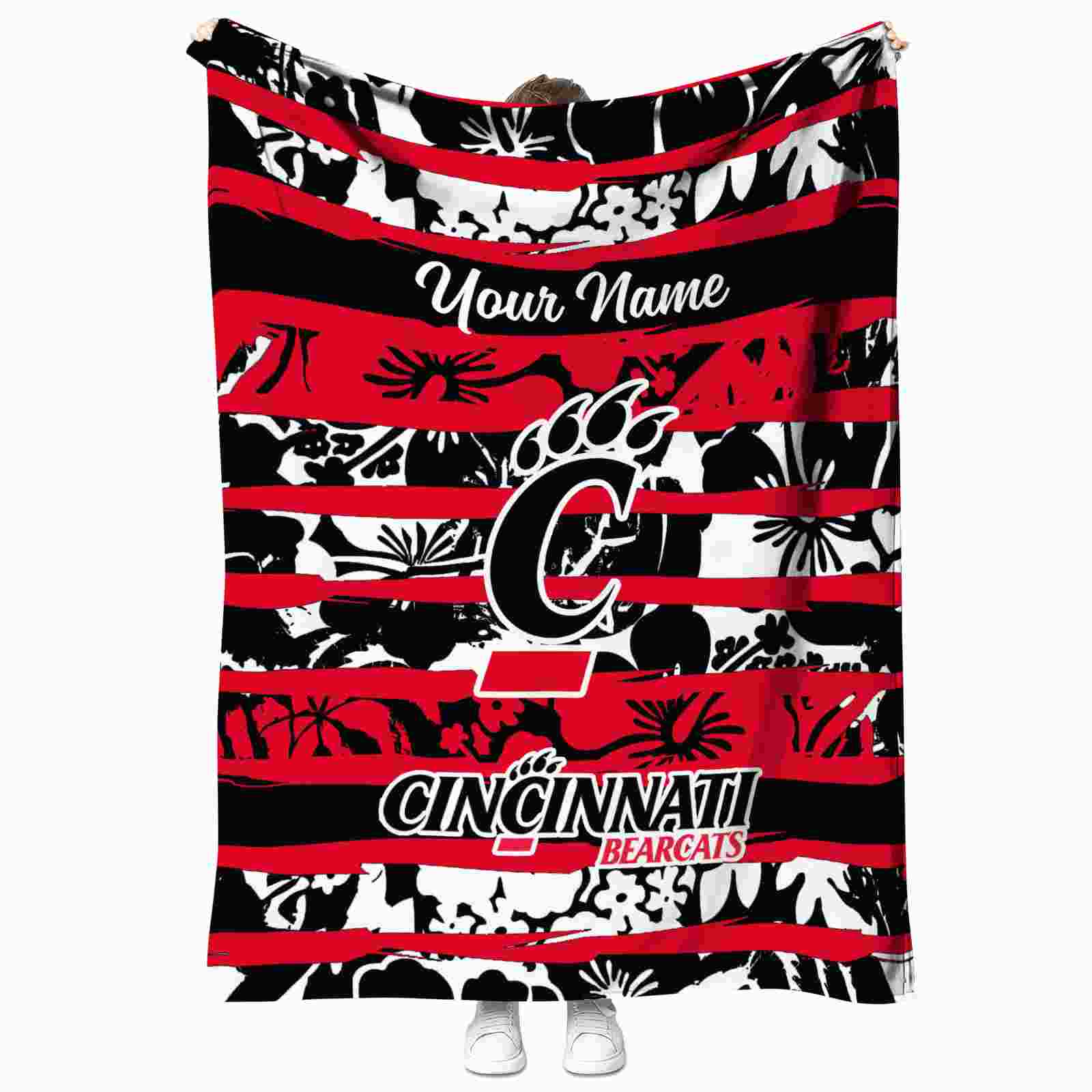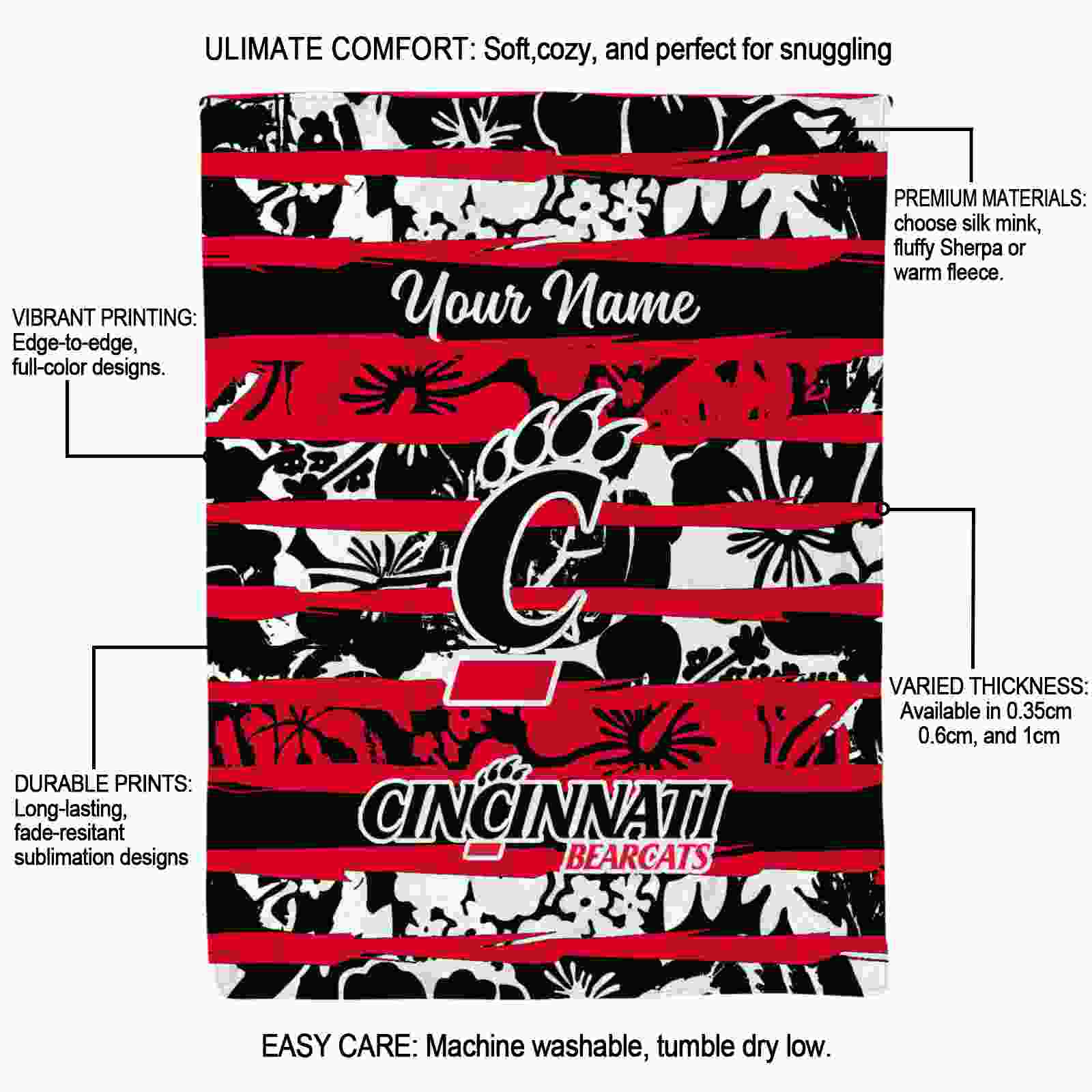 Personalized Cincinnati Bearcats Floral Stripes Red White Blanket