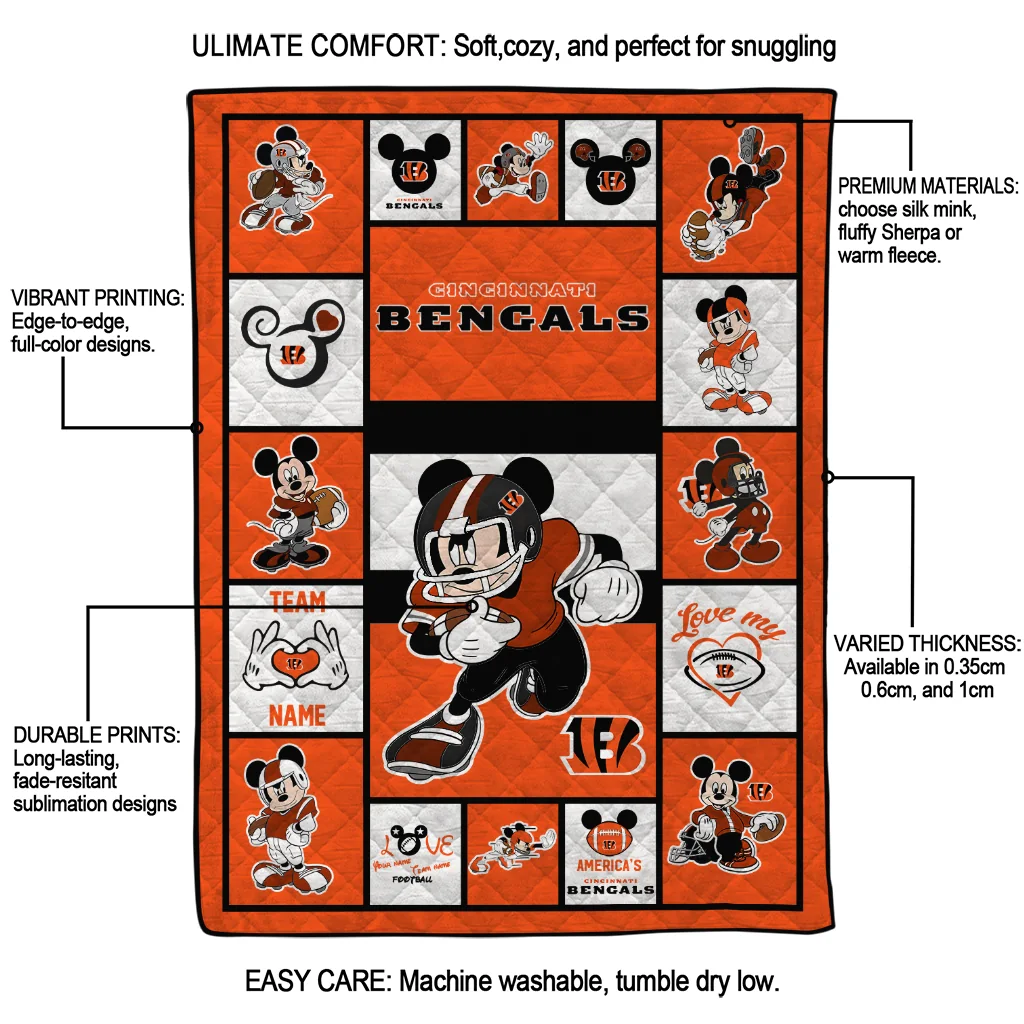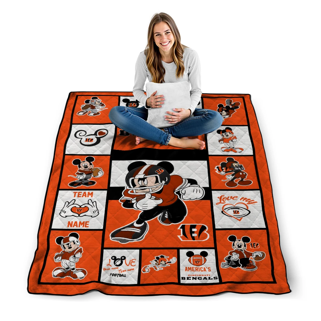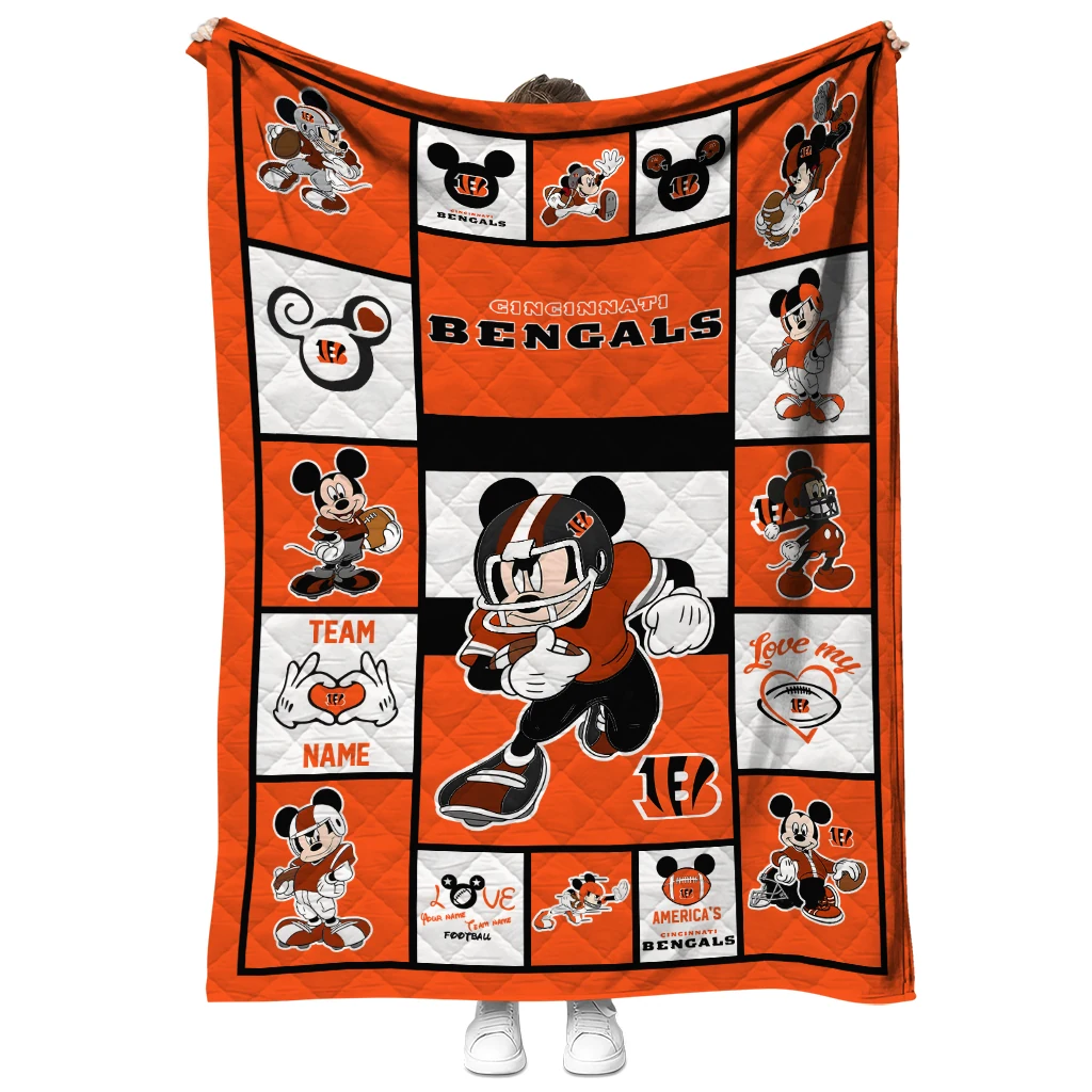 Personalized Cincinnati Bengals Mickey Crimson Orange White Quilt Blanket