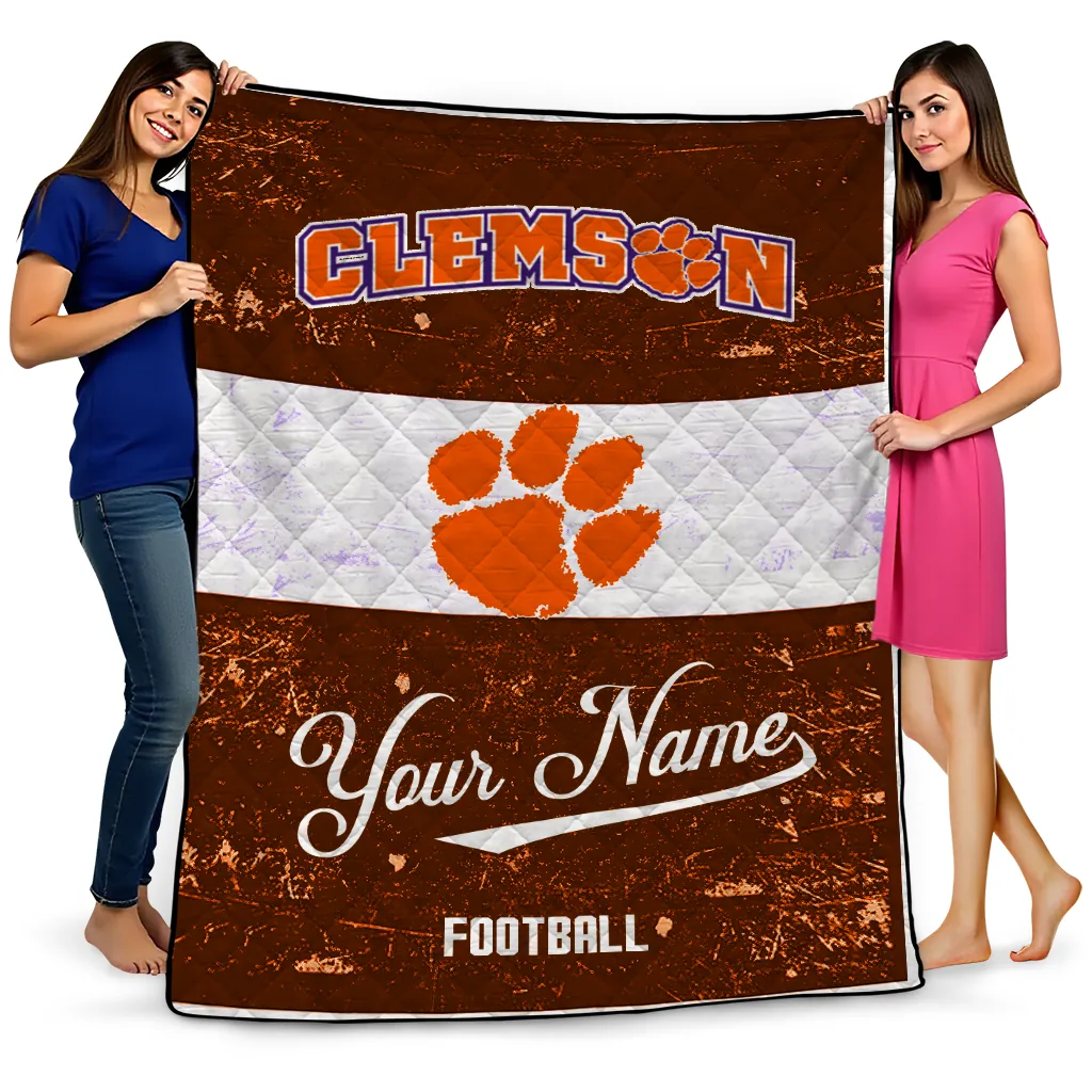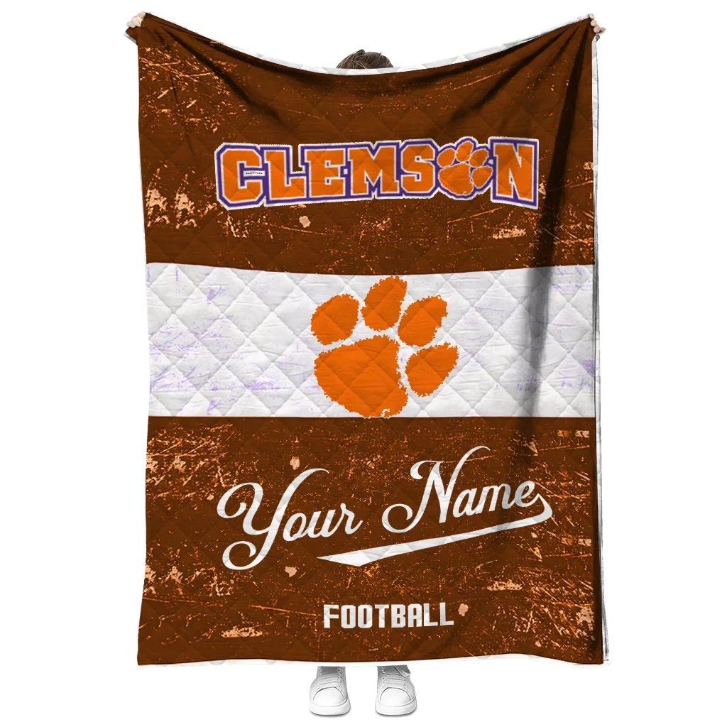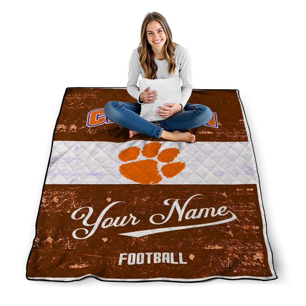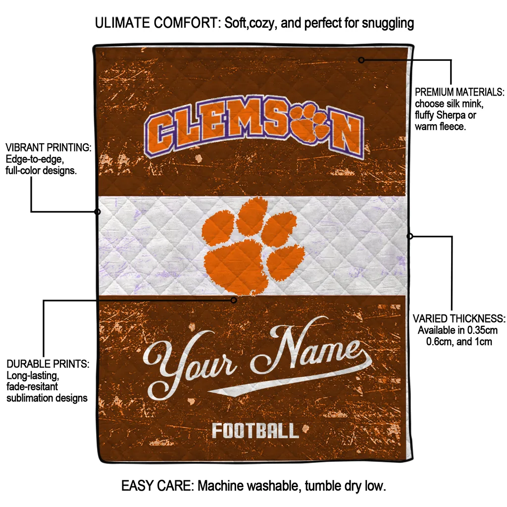 Wrap yourself in warmth and pride with the Personalized Clemson Tigers Hibiscus Burst Orange White Quilt Blanket from the Clemson Tigers Blankets collection at Yes That Blanket. Made from 100% premium quilting-weight polyester blended with a touch of microfiber, this quilt offers a smooth, soft finish you’ll love. Choose between two quilting styles—Stipple or Diagonal—and enjoy the comfort of a cotton-filled layer inside that adds extra coziness for every season. The border is available in classic black or white, giving your design a clean, timeless edge.