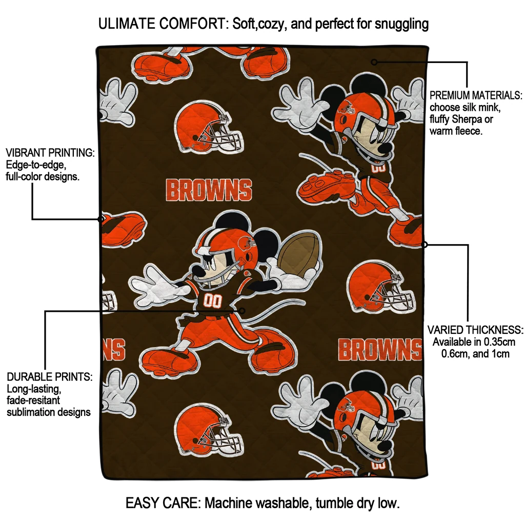 The Personalized Cleveland Browns Mickey Football Brown Quilt Blanket is more than a blanket—it’s everyday comfort, thoughtfully made. Crafted from premium quilting fabric with a soft microfiber touch, it offers a smooth hand-feel and lasting coziness. Layered quilting with a cotton-filled core provides adaptable warmth across seasons while maintaining a clean, tailored look on your bed or sofa.