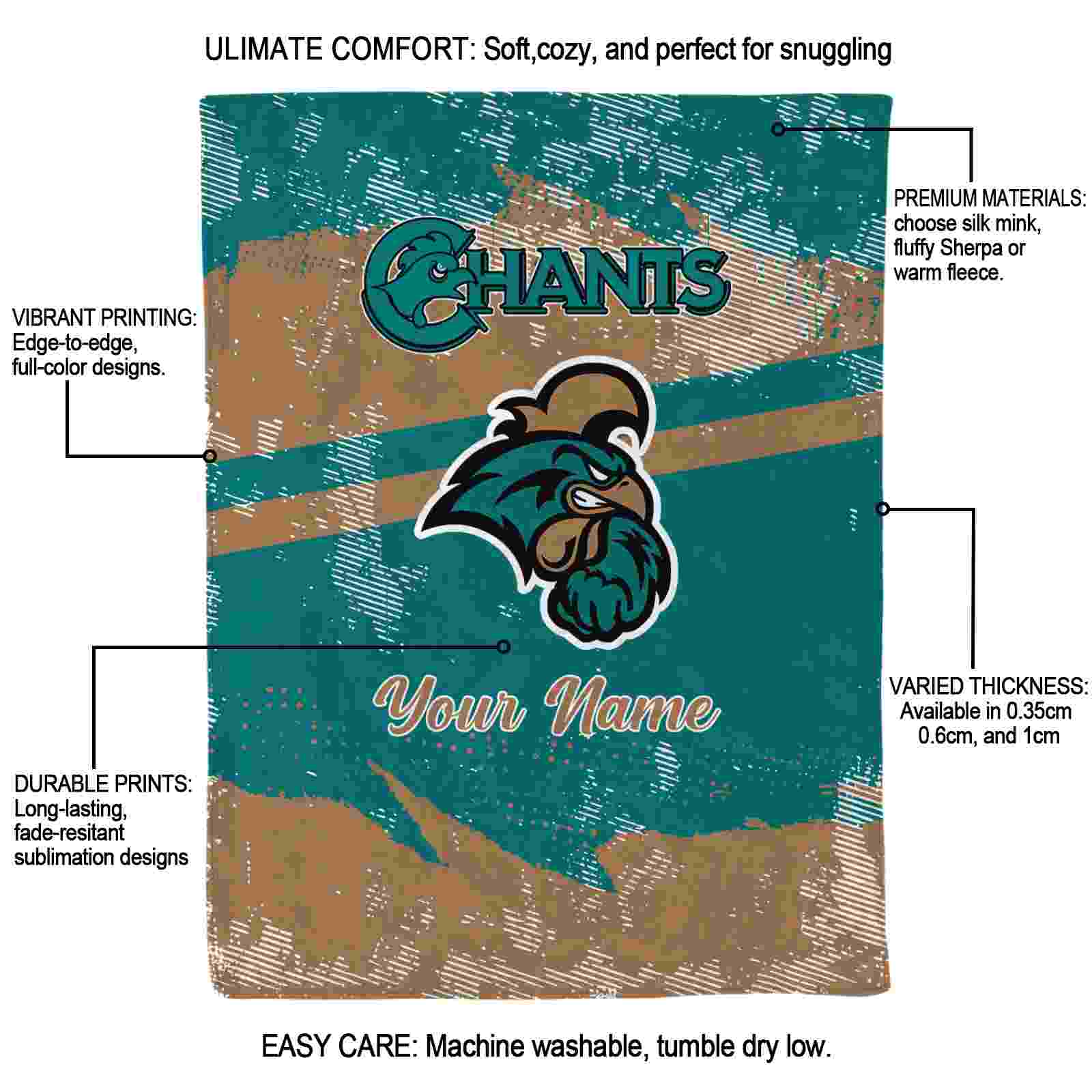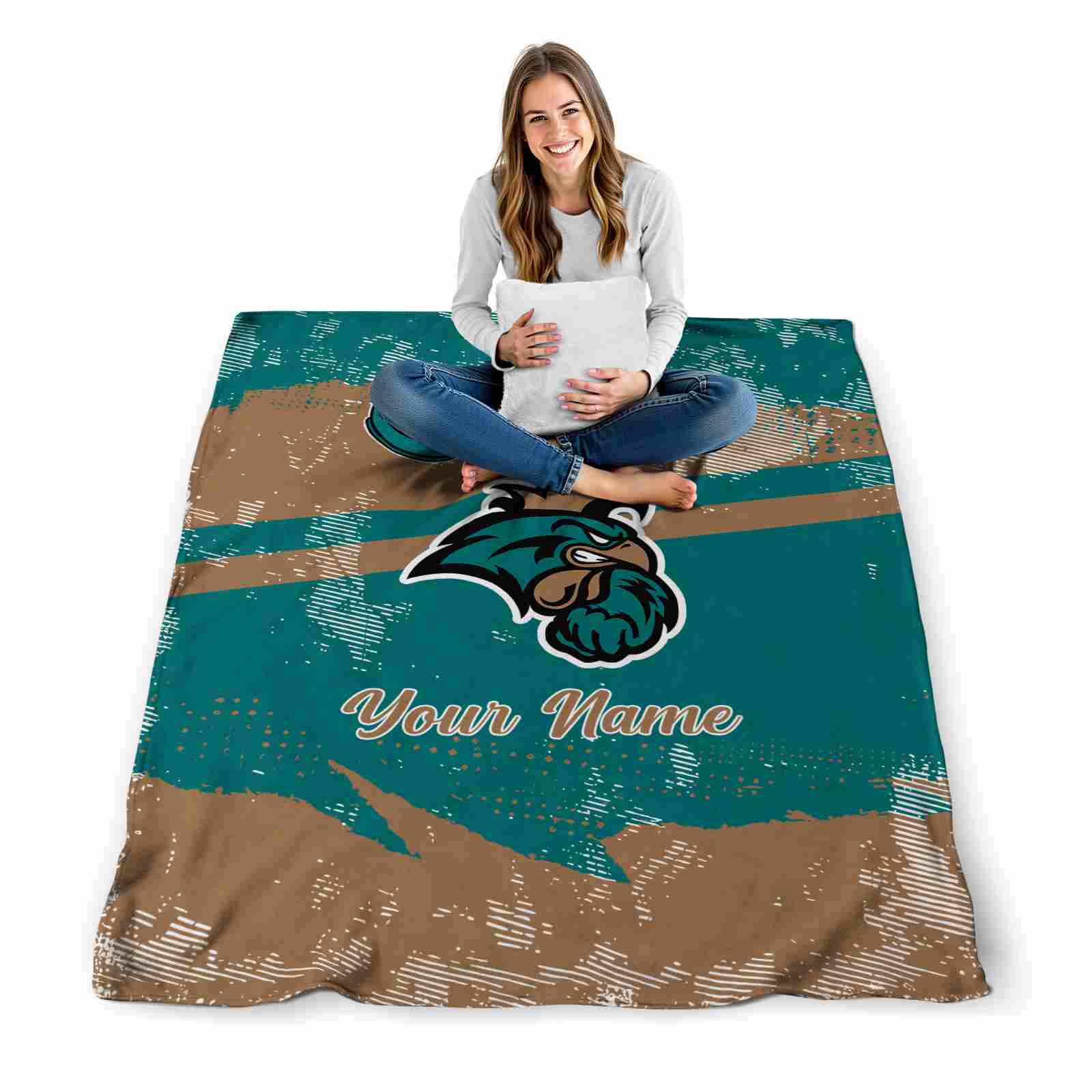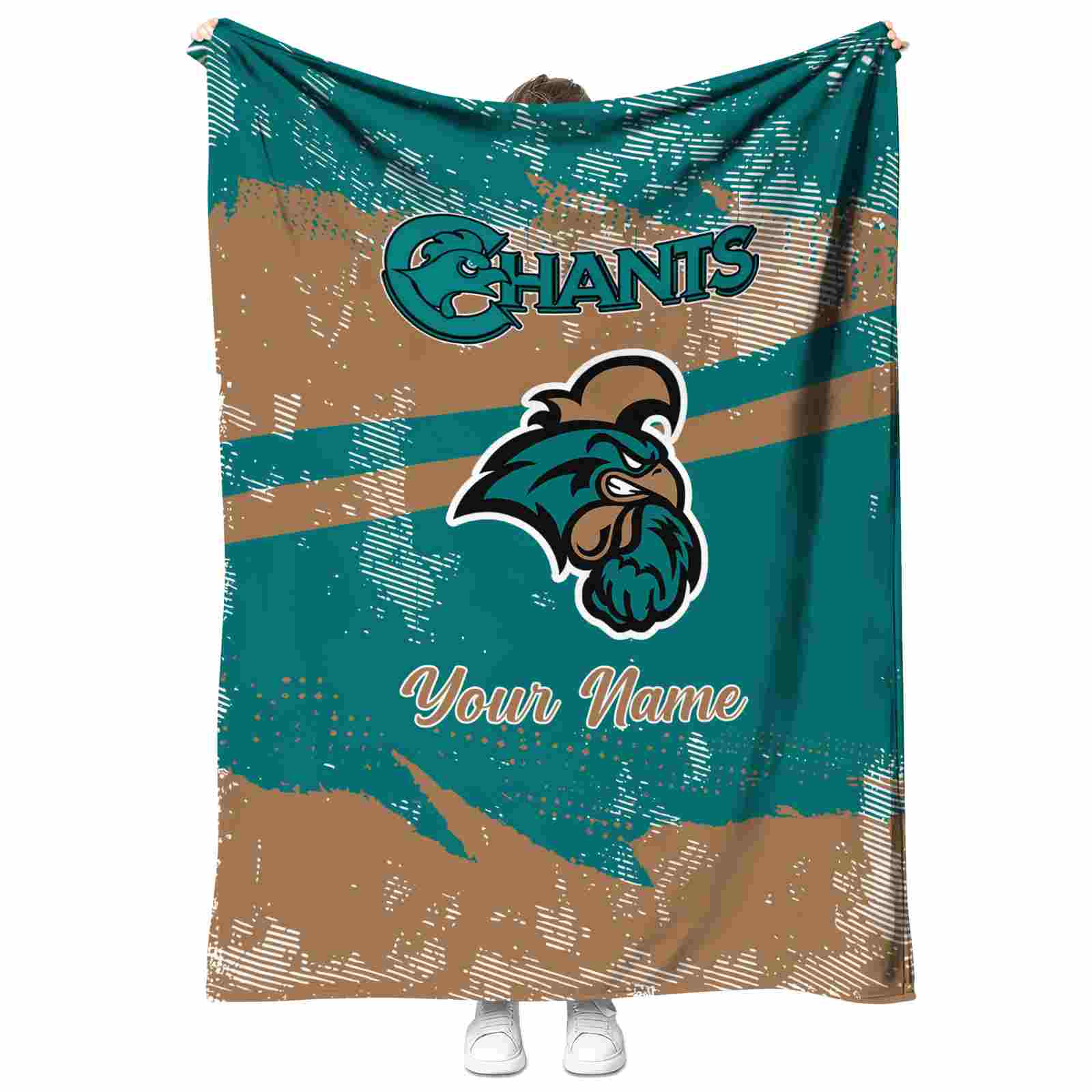 Personalized Coastal Carolina Chanticleers Grunge Streaks Green Blanket