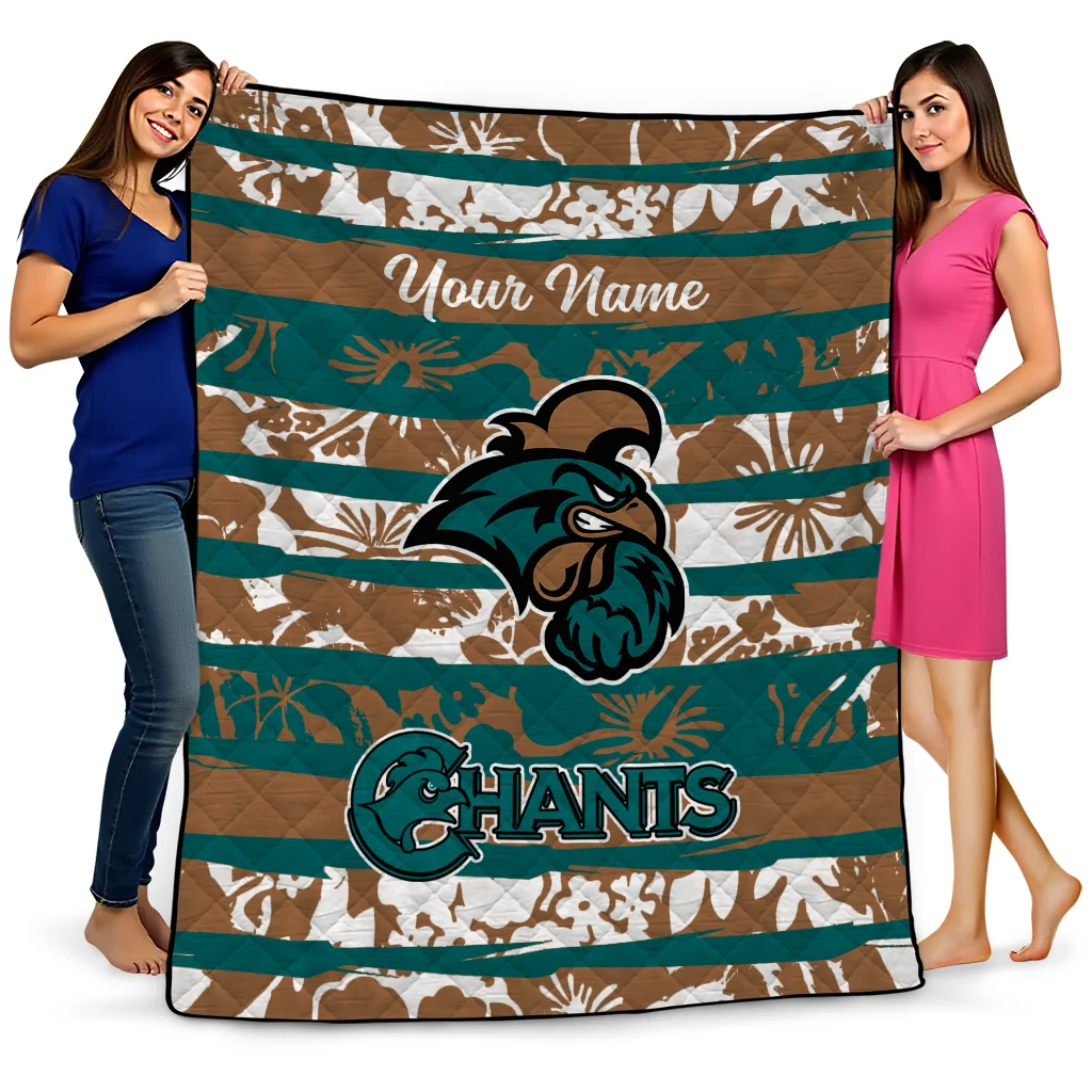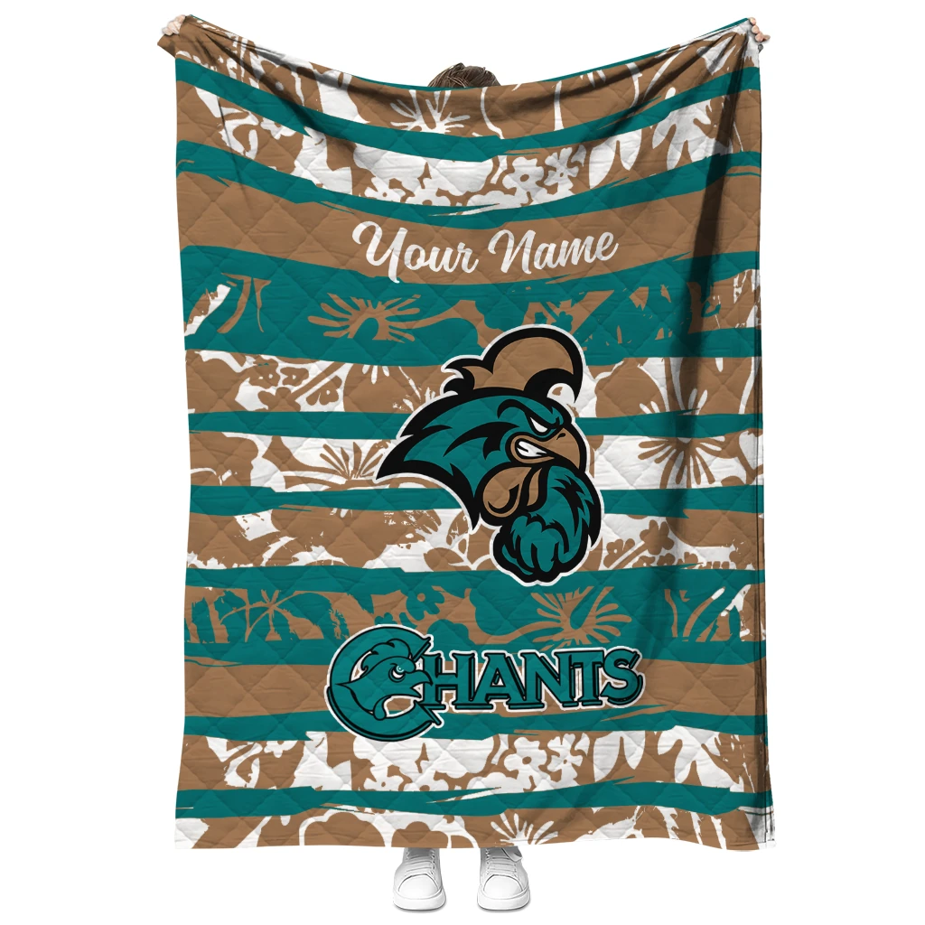 The Personalized Coastal Carolina Chanticleers Layered Florals Green White Quilt Blanket is more than a blanket—it’s everyday comfort, thoughtfully made. Crafted from premium quilting fabric with a soft microfiber touch, it offers a smooth hand-feel and lasting coziness. Layered quilting with a cotton-filled core provides adaptable warmth across seasons while maintaining a clean, tailored look on your bed or sofa.