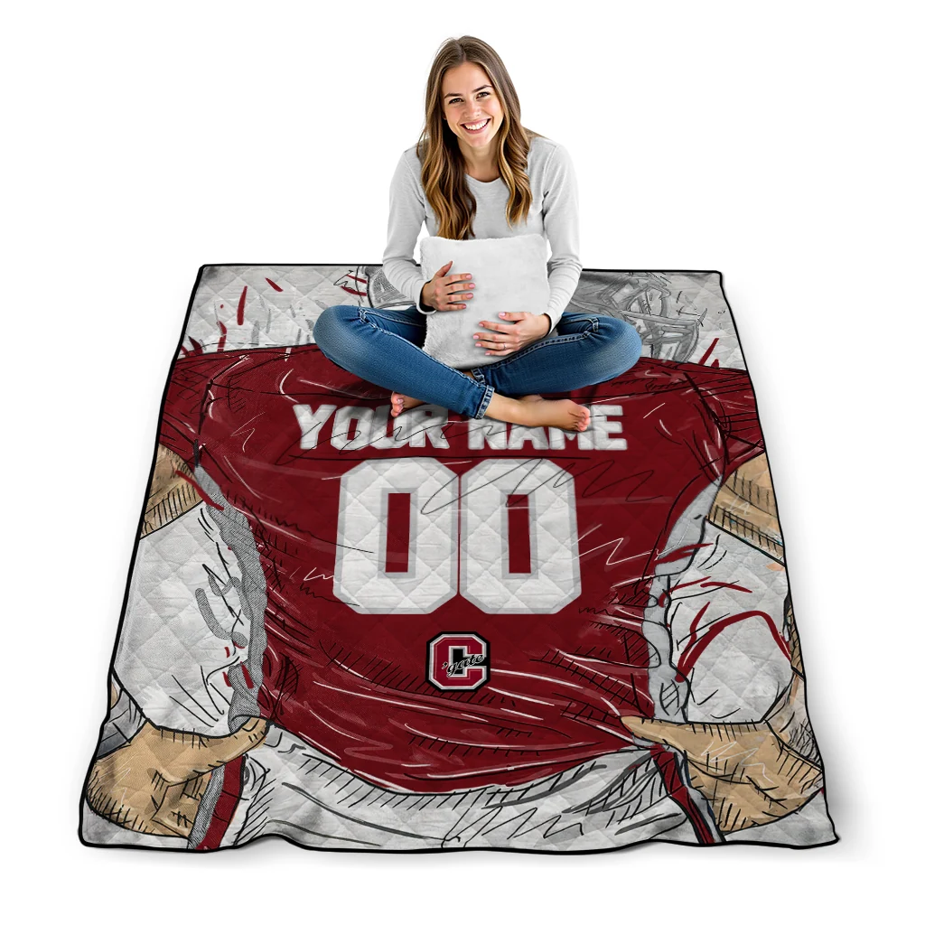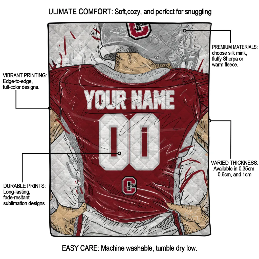 The Personalized Colgate Raiders Player Sketch Maroon Gray Quilt Blanket is more than a blanket—it’s everyday comfort, thoughtfully made. Crafted from premium quilting fabric with a soft microfiber touch, it offers a smooth hand-feel and lasting coziness. Layered quilting with a cotton-filled core provides adaptable warmth across seasons while maintaining a clean, tailored look on your bed or sofa.
