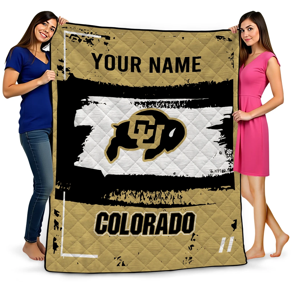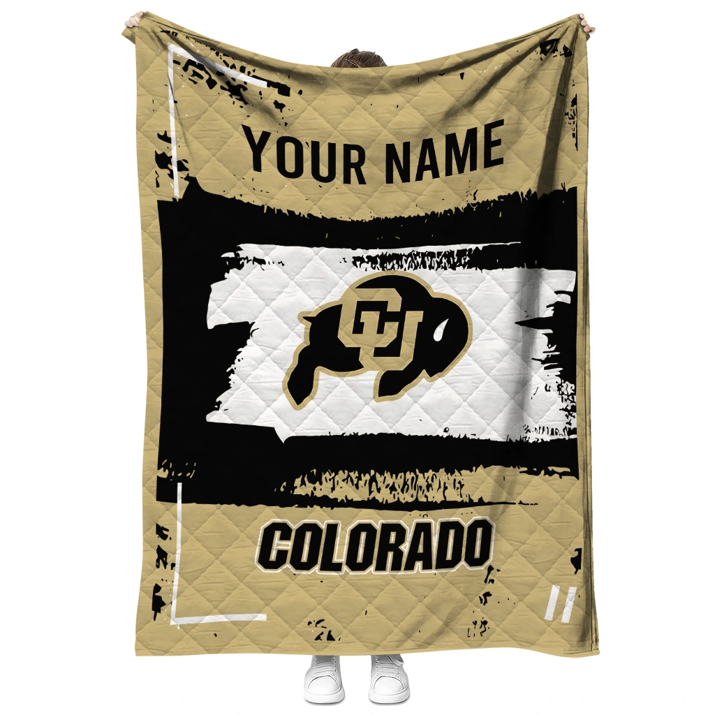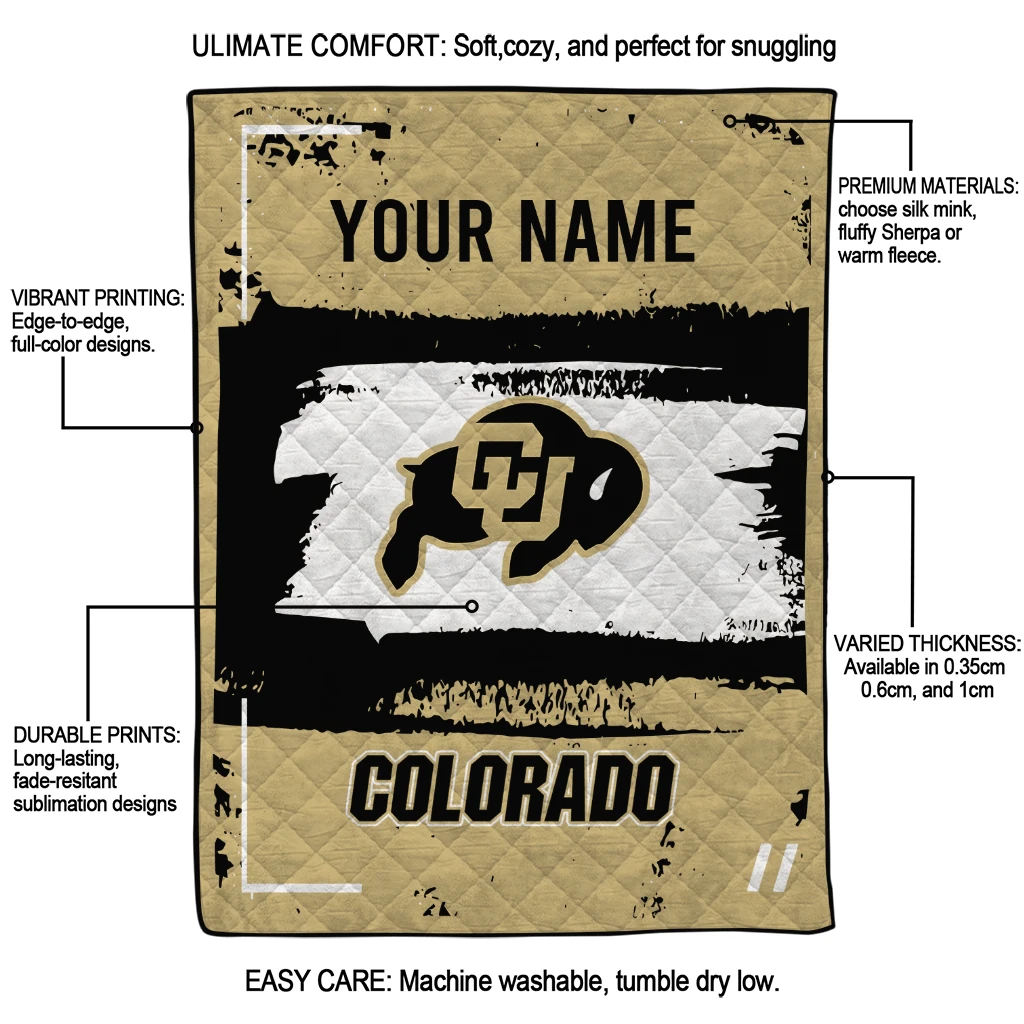 Personalized Colorado Buffaloes Grunge Patch Gold White Quilt Blanket