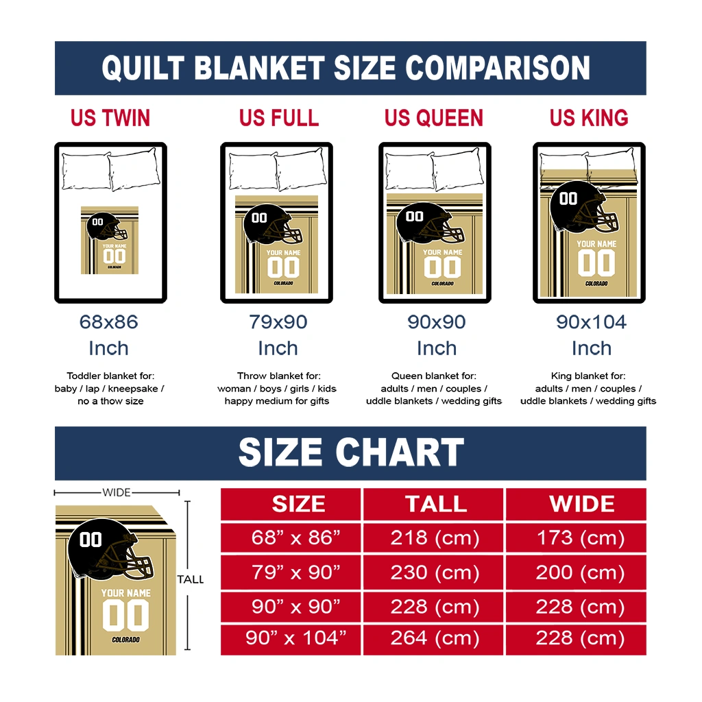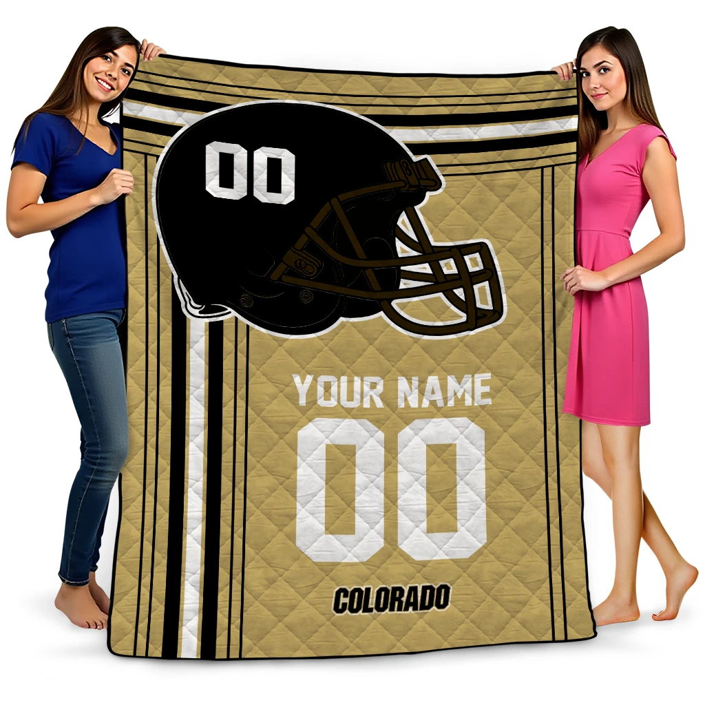 Personalized Colorado Buffaloes Helmet Theme Gold Quilt Blanket