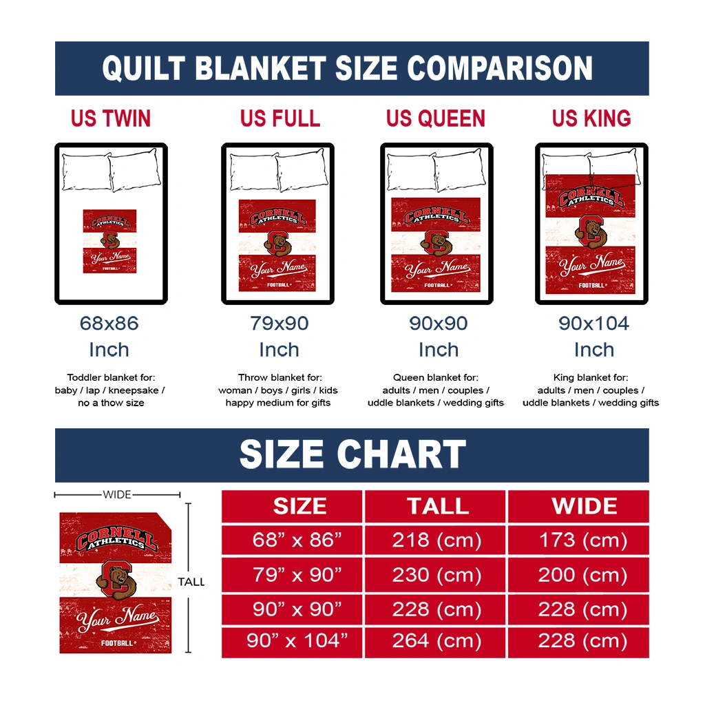 The Personalized Cornell Big Red Hibiscus Burst Red White Quilt Blanket is more than a blanket—it’s everyday comfort, thoughtfully made. Crafted from premium quilting fabric with a soft microfiber touch, it offers a smooth hand-feel and lasting coziness. Layered quilting with a cotton-filled core provides adaptable warmth across seasons while maintaining a clean, tailored look on your bed or sofa.
