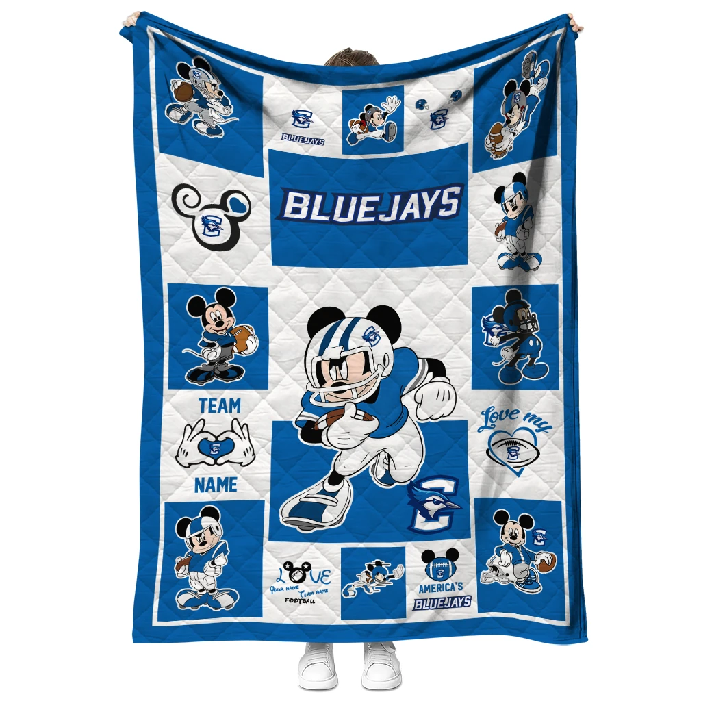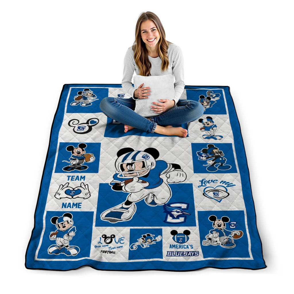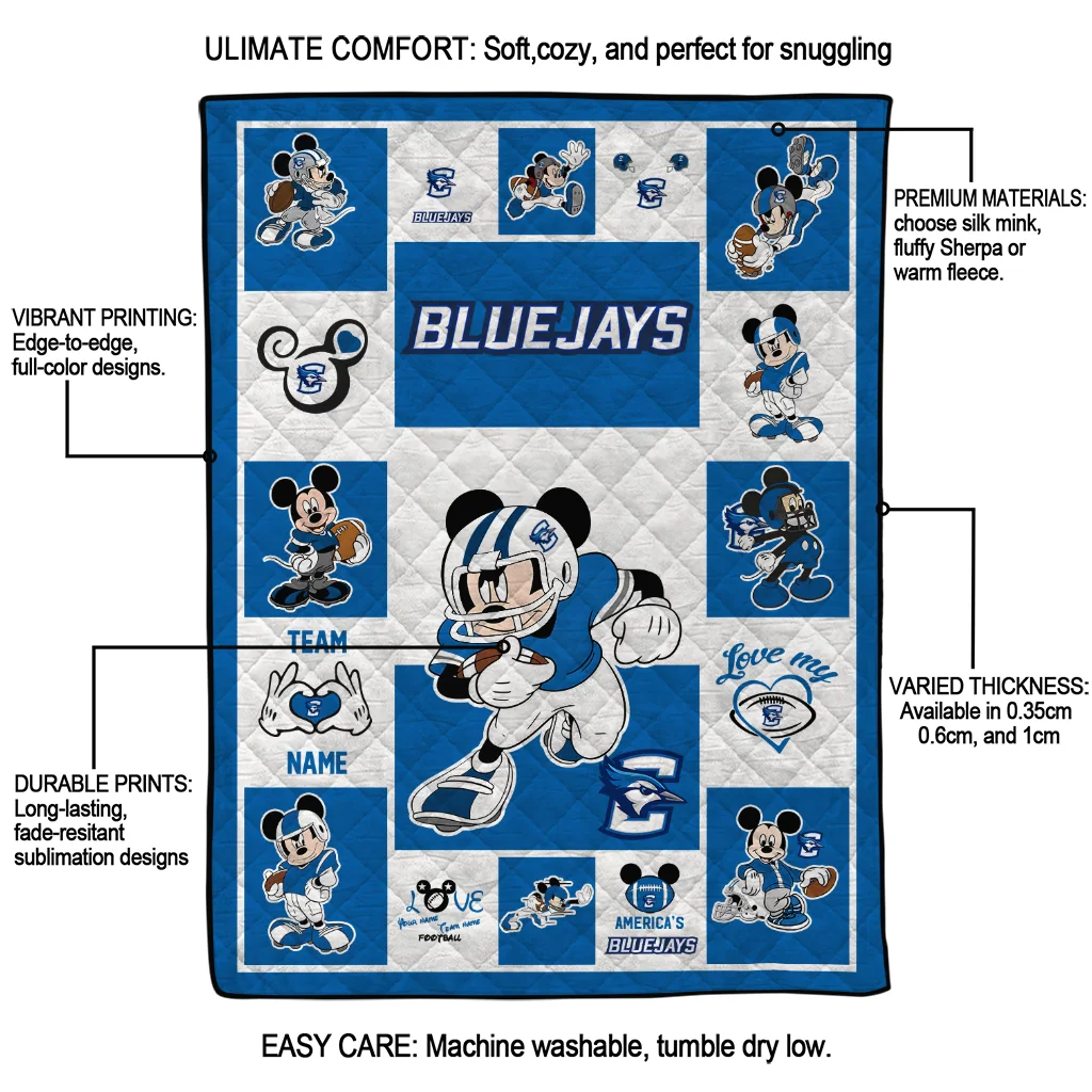 Personalized Creighton Bluejays Mickey Crimson Blue White Quilt Blanket