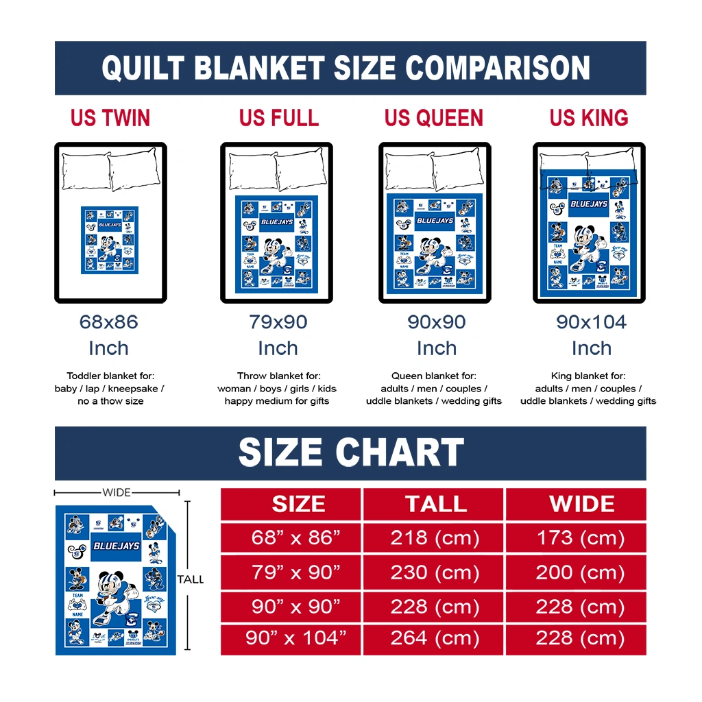 Wrap yourself in warmth and pride with the Personalized Creighton Bluejays Mickey Crimson Blue White Quilt Blanket from the Creighton Bluejays Blankets collection at Yes That Blanket. Made from 100% premium quilting-weight polyester blended with a touch of microfiber, this quilt offers a smooth, soft finish you’ll love. Choose between two quilting styles—Stipple or Diagonal—and enjoy the comfort of a cotton-filled layer inside that adds extra coziness for every season. The border is available in classic black or white, giving your design a clean, timeless edge.