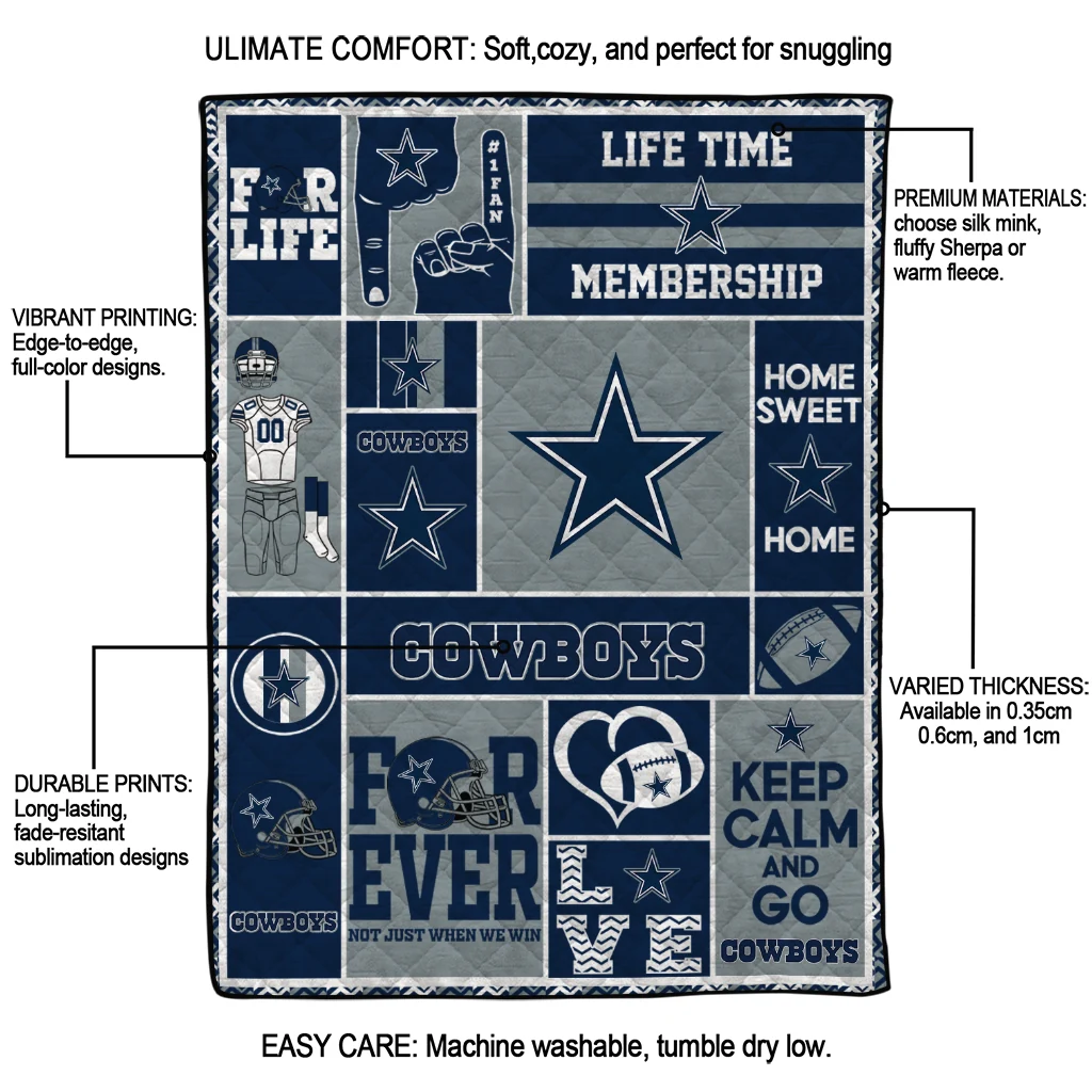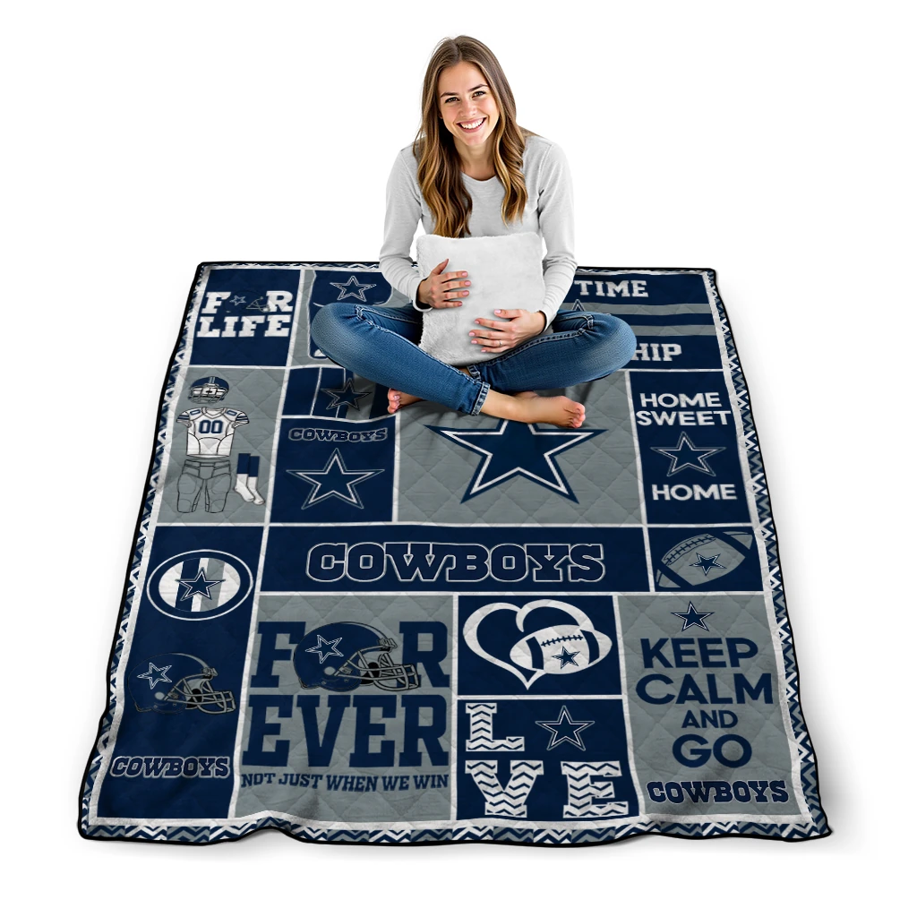 The Personalized Dallas Cowboys Helmet Passion Blue Quilt Blanket is more than a blanket—it’s everyday comfort, thoughtfully made. Crafted from premium quilting fabric with a soft microfiber touch, it offers a smooth hand-feel and lasting coziness. Layered quilting with a cotton-filled core provides adaptable warmth across seasons while maintaining a clean, tailored look on your bed or sofa.