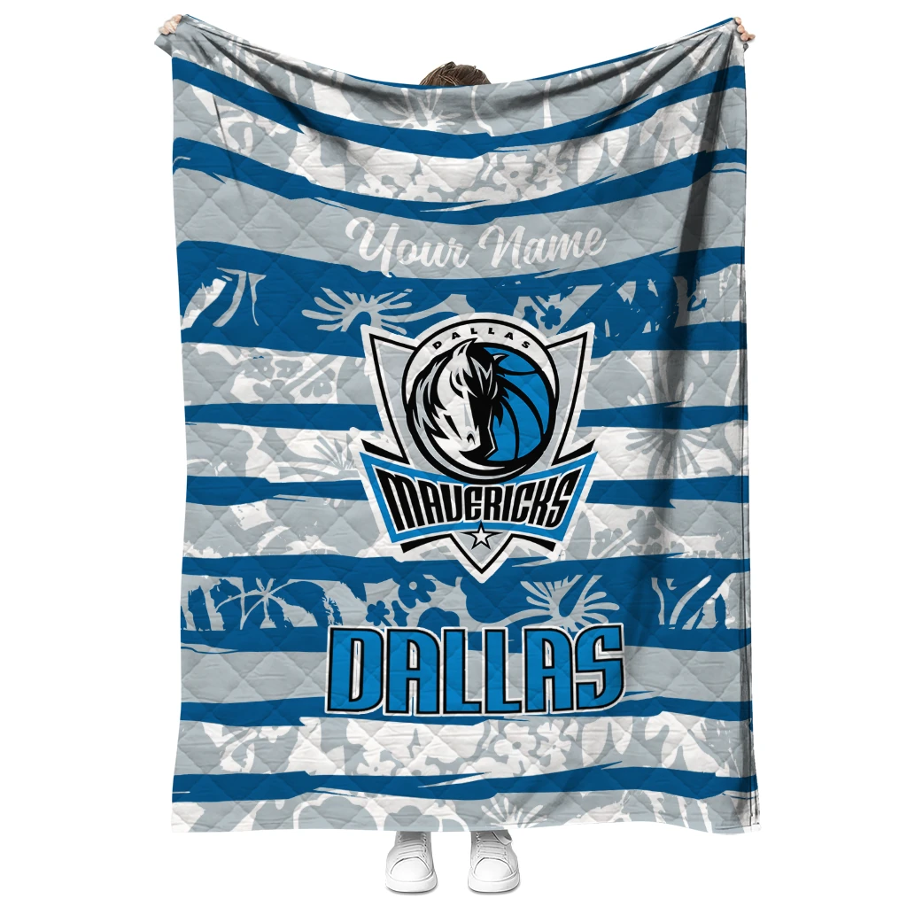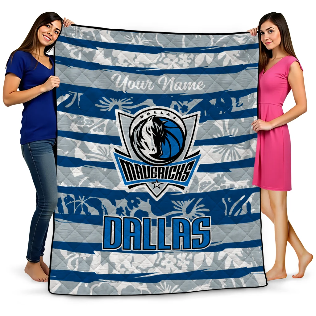 Personalized Dallas Mavericks Layered Florals Blue White Quilt Blanket