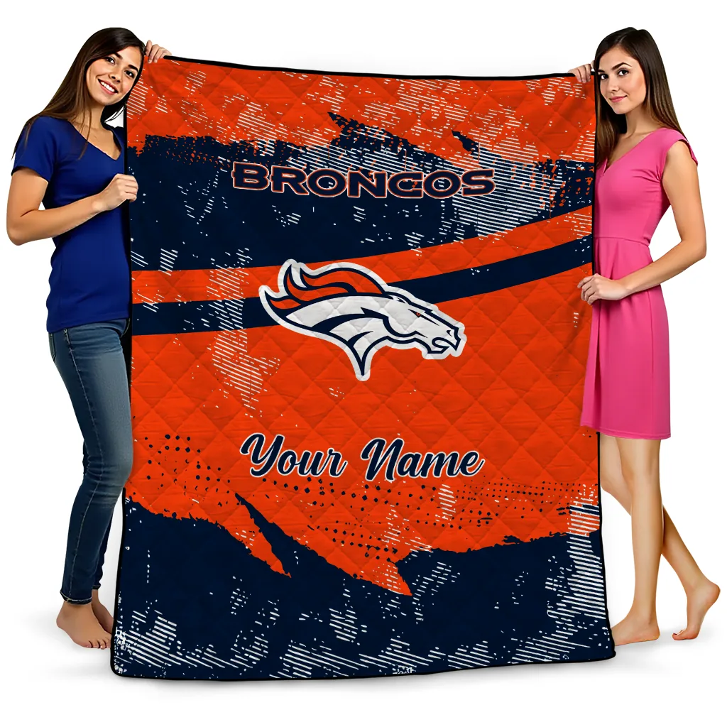 Personalized Denver Broncos Brushstroke Layers Orange Quilt Blanket