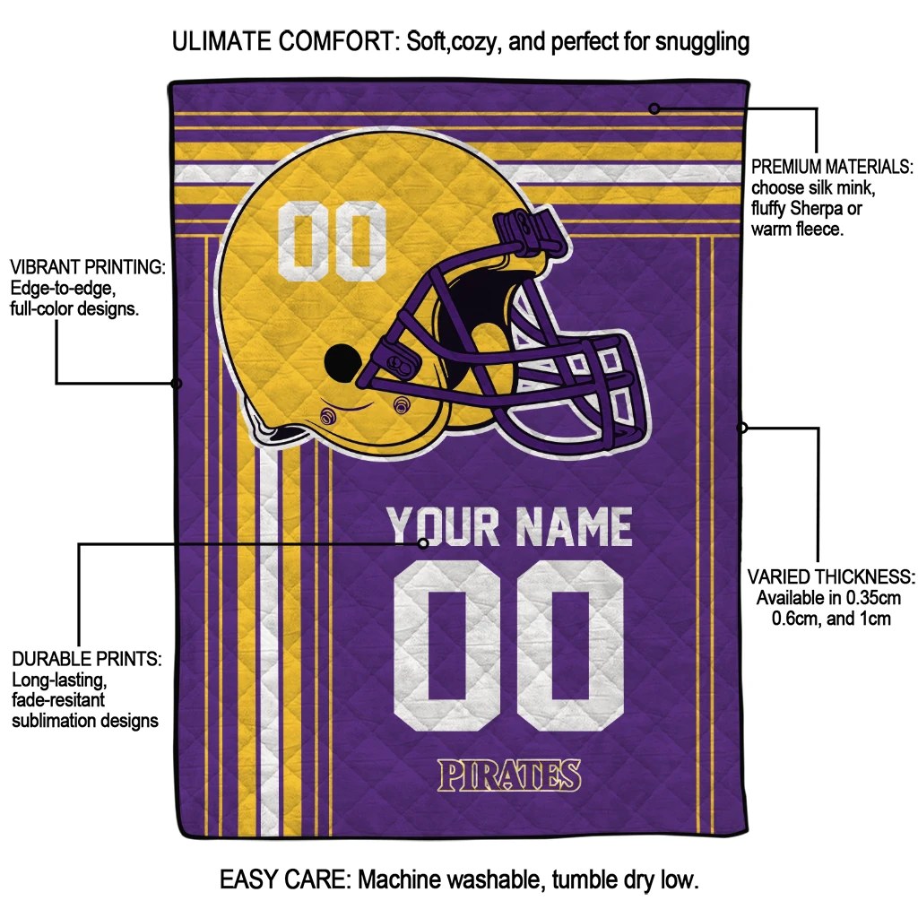 Personalized East Carolina Pirates Helmet Theme Purple Quilt Blanket