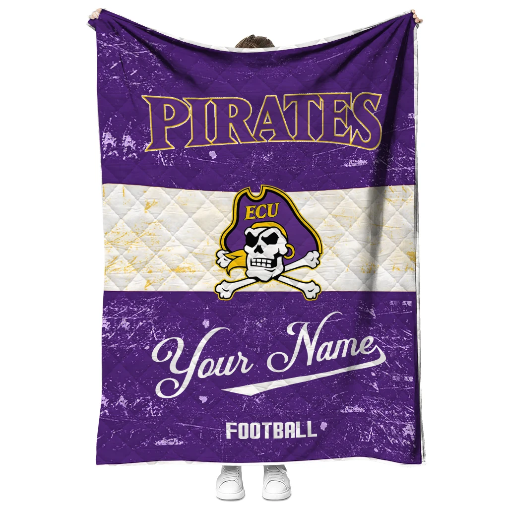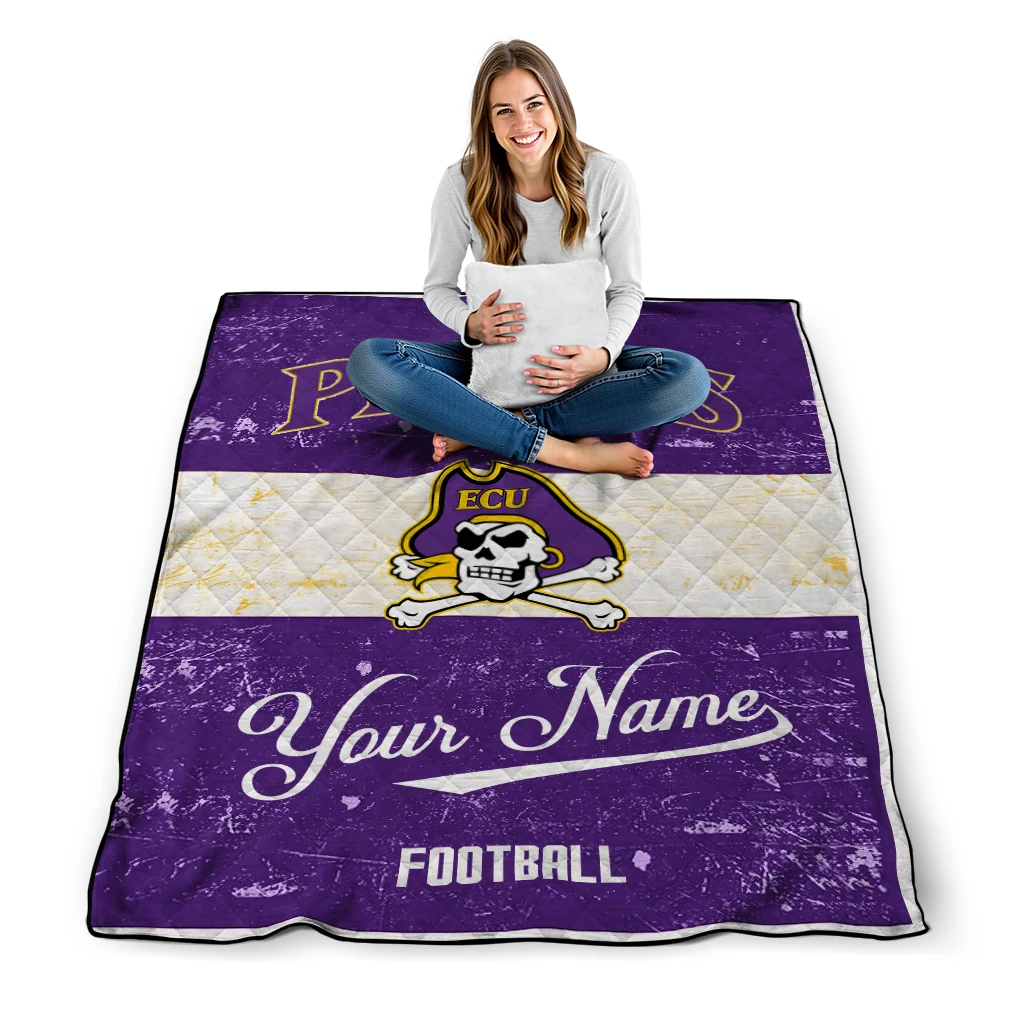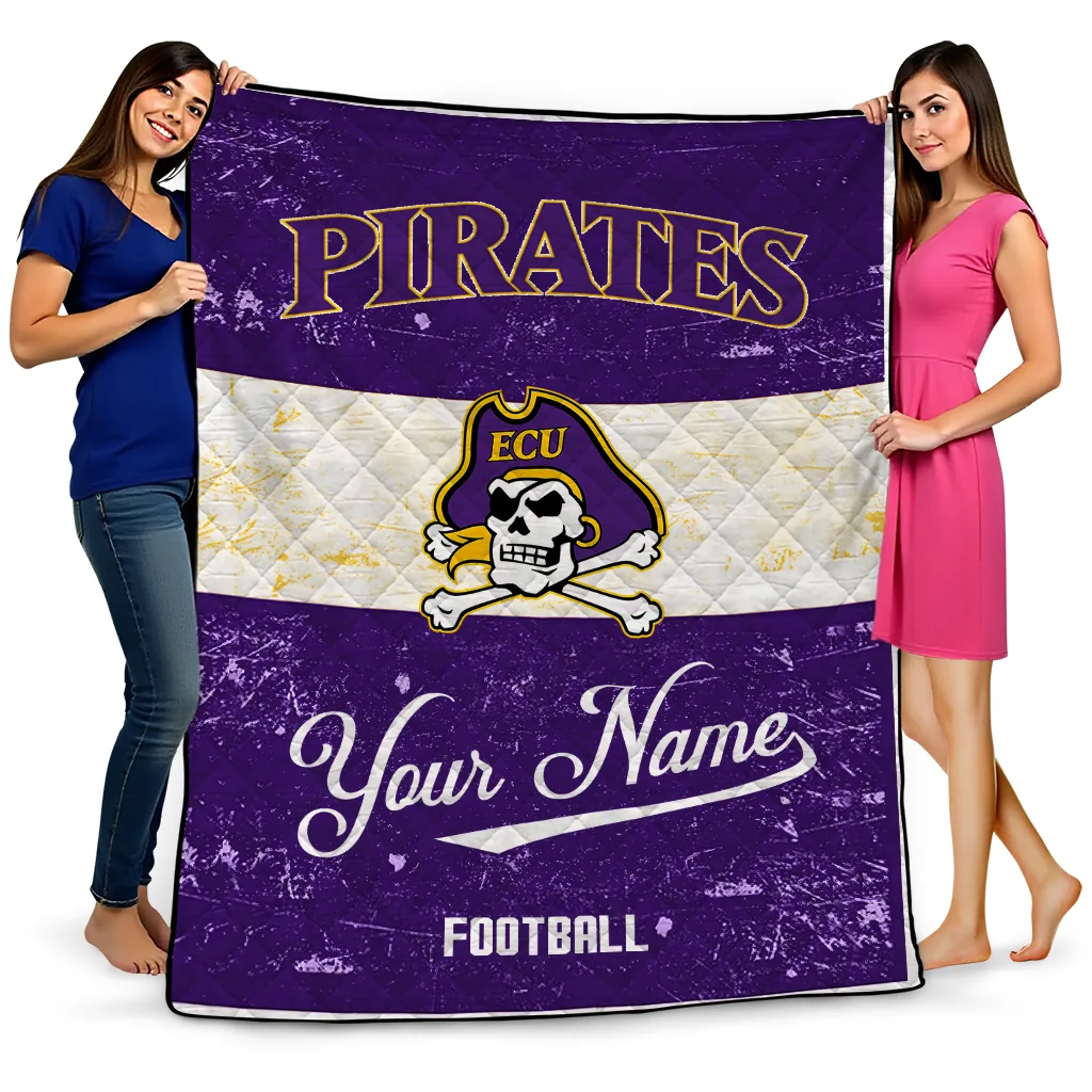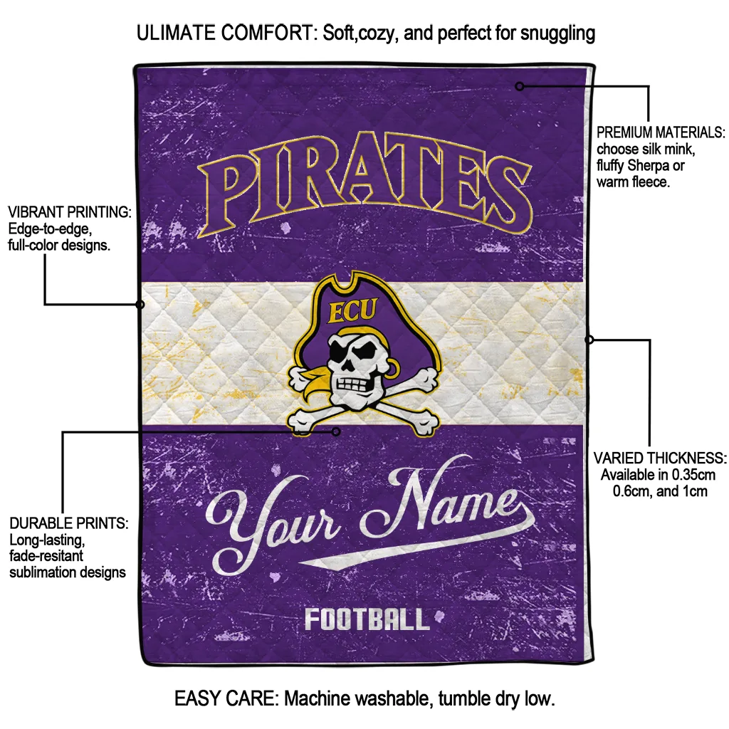 Personalized East Carolina Pirates Hibiscus Burst Purple White Quilt Blanket