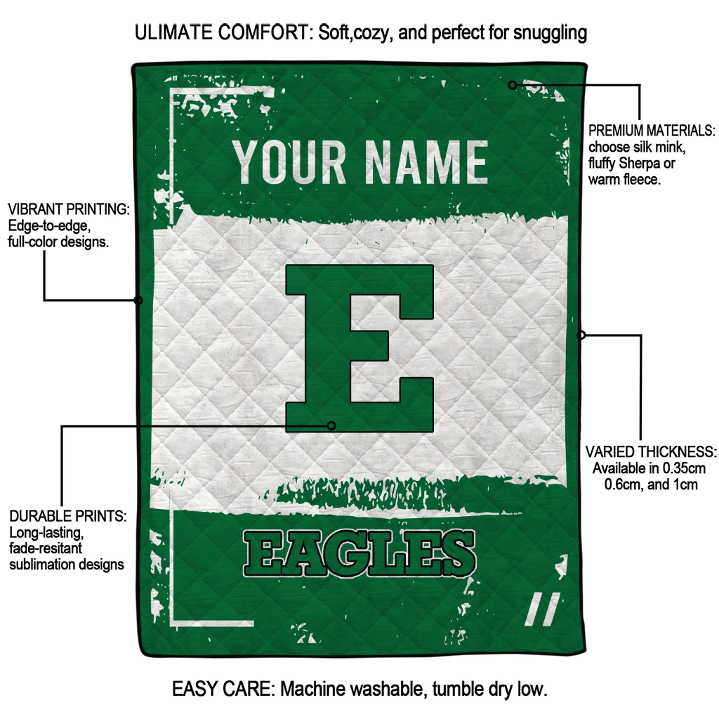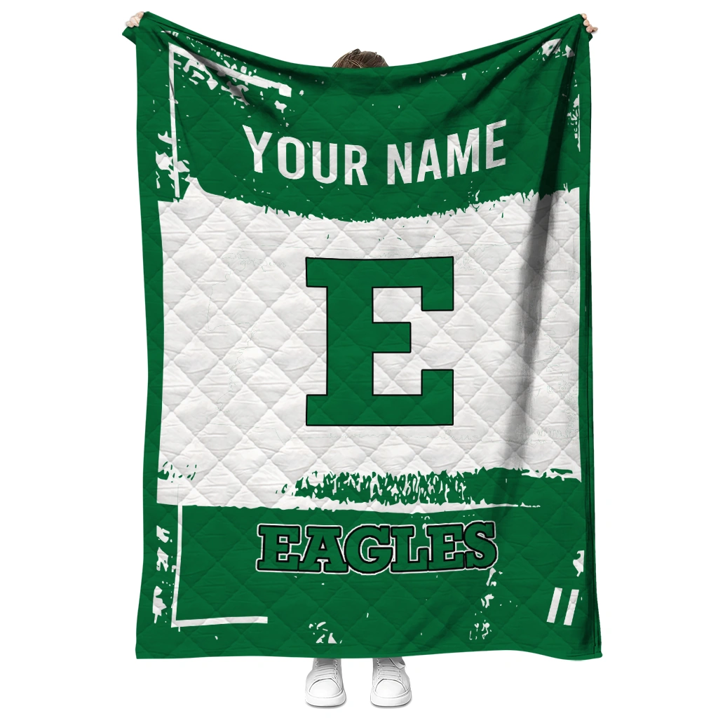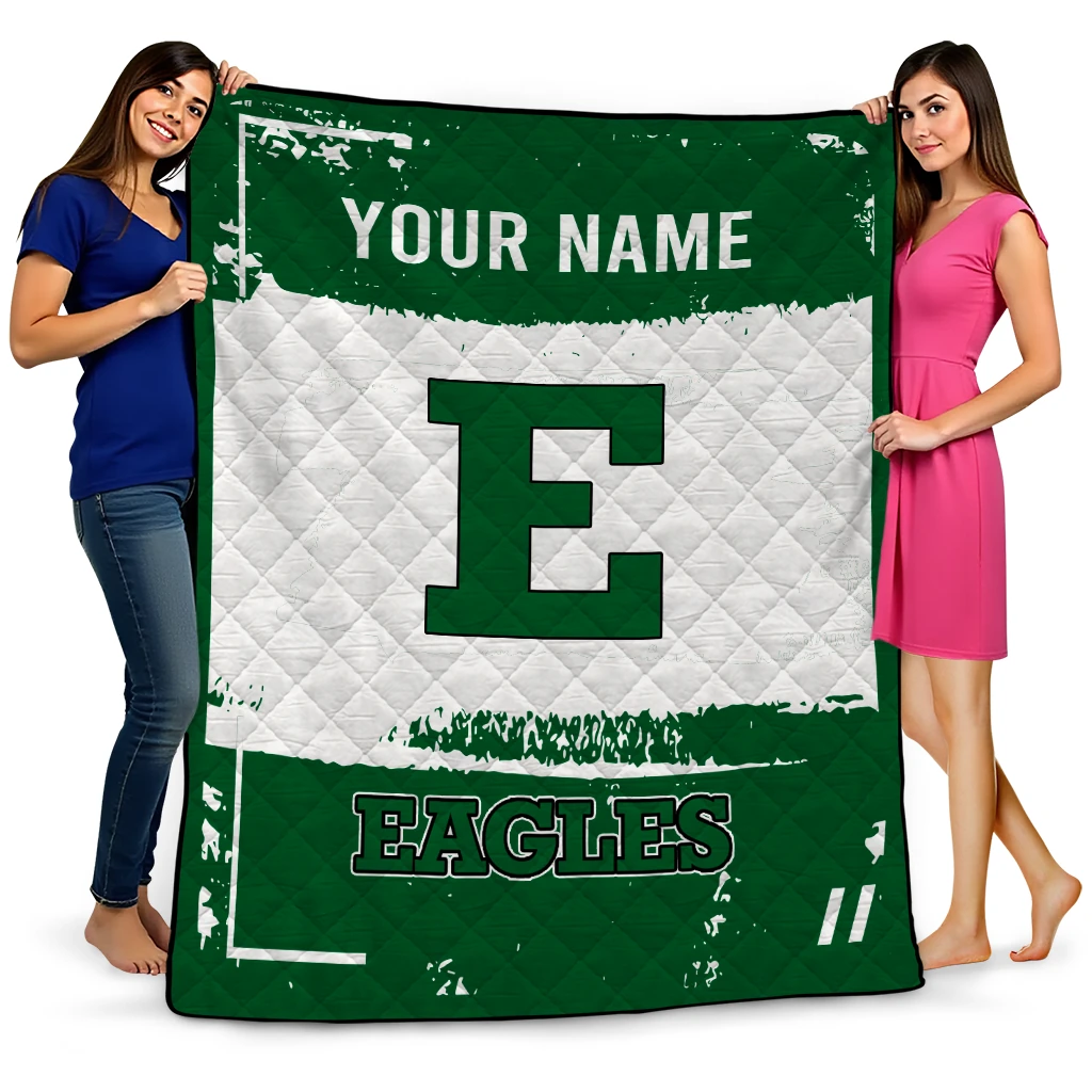 Personalized Eastern Michigan Eagles Grunge Patch Green White Quilt Blanket