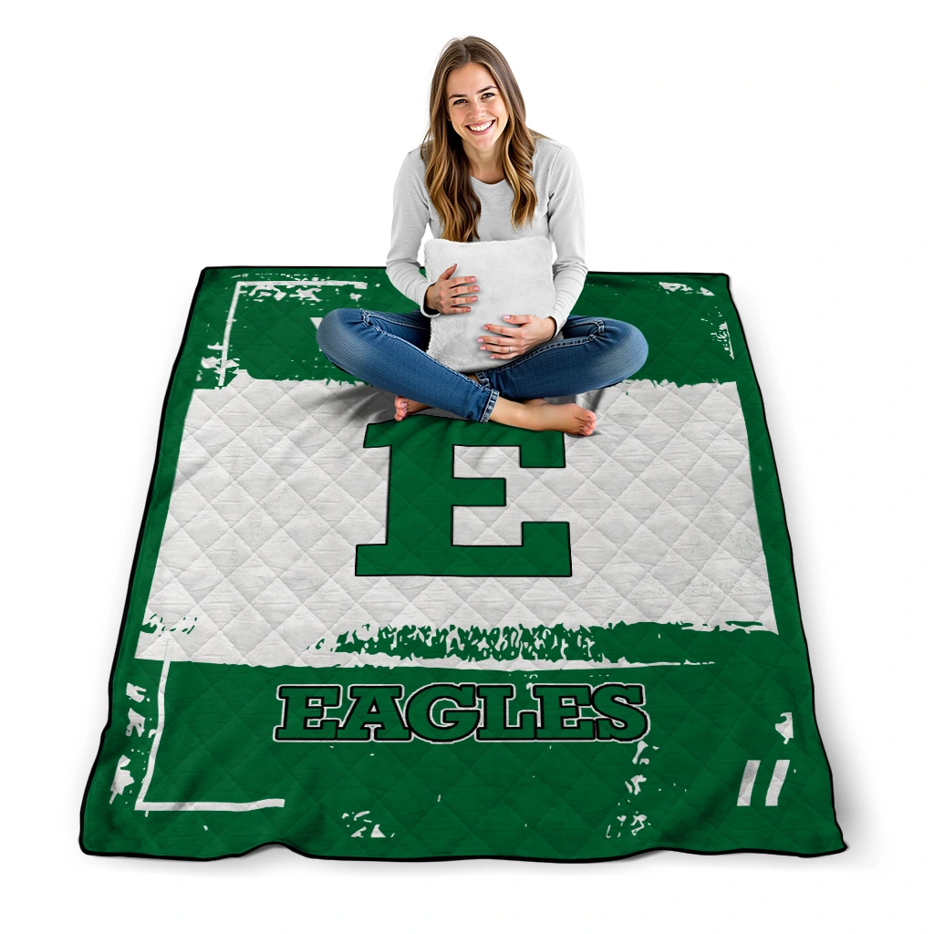 Wrap yourself in warmth and pride with the Personalized Eastern Michigan Eagles Grunge Patch Green White Quilt Blanket from the Eastern Michigan Eagles Blankets collection at Yes That Blanket. Made from 100% premium quilting-weight polyester blended with a touch of microfiber, this quilt offers a smooth, soft finish you’ll love. Choose between two quilting styles—Stipple or Diagonal—and enjoy the comfort of a cotton-filled layer inside that adds extra coziness for every season. The border is available in classic black or white, giving your design a clean, timeless edge.