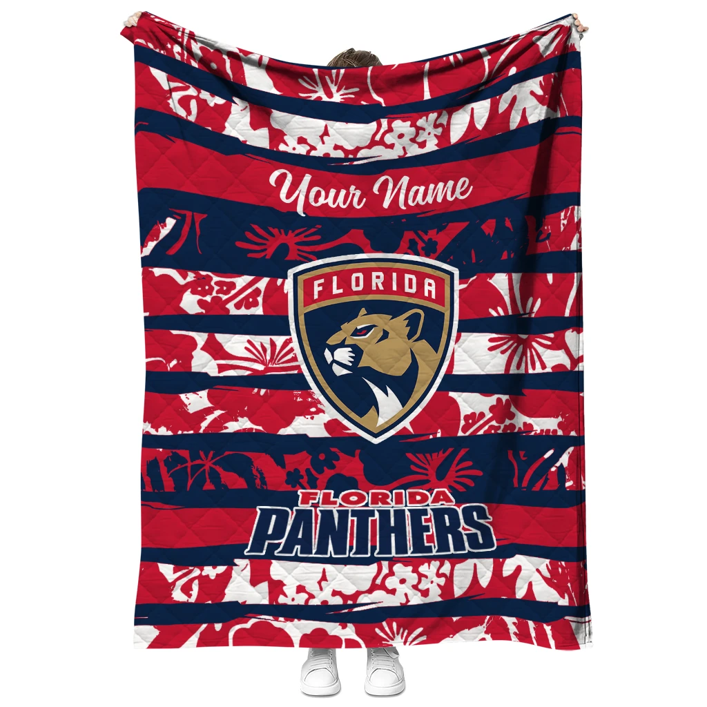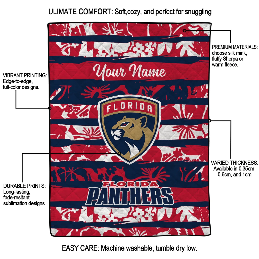 Wrap yourself in warmth and pride with the Personalized Florida Panthers Layered Florals Red White Quilt Blanket from the Florida Panthers Blankets collection at Yes That Blanket. Made from 100% premium quilting-weight polyester blended with a touch of microfiber, this quilt offers a smooth, soft finish you’ll love. Choose between two quilting styles—Stipple or Diagonal—and enjoy the comfort of a cotton-filled layer inside that adds extra coziness for every season. The border is available in classic black or white, giving your design a clean, timeless edge.