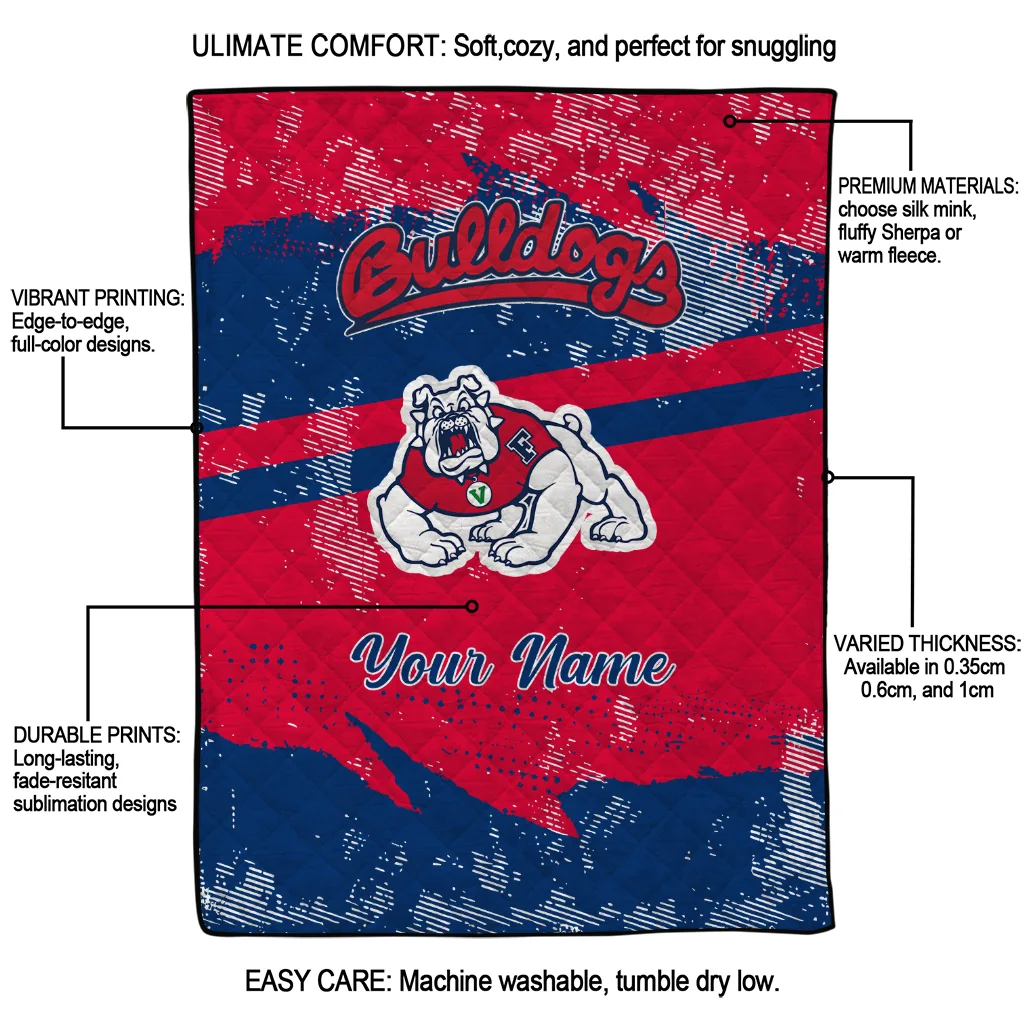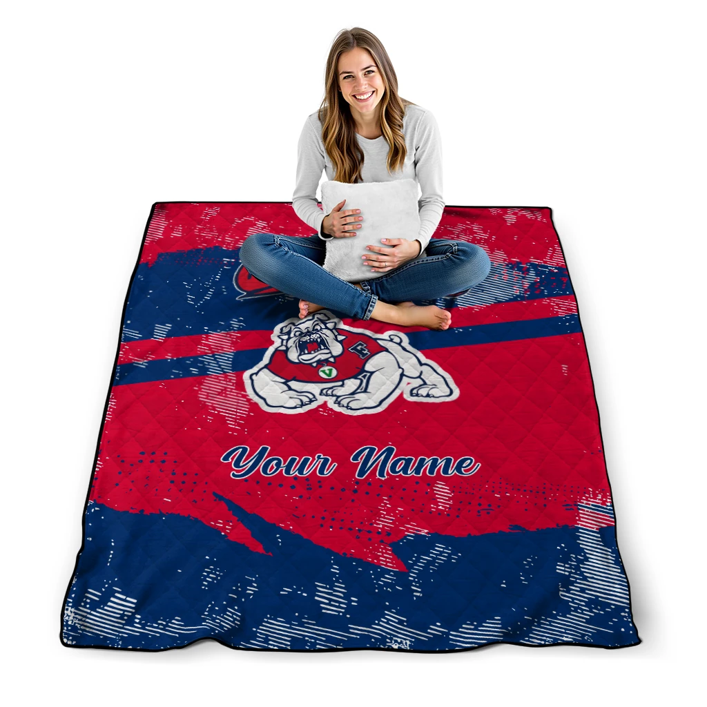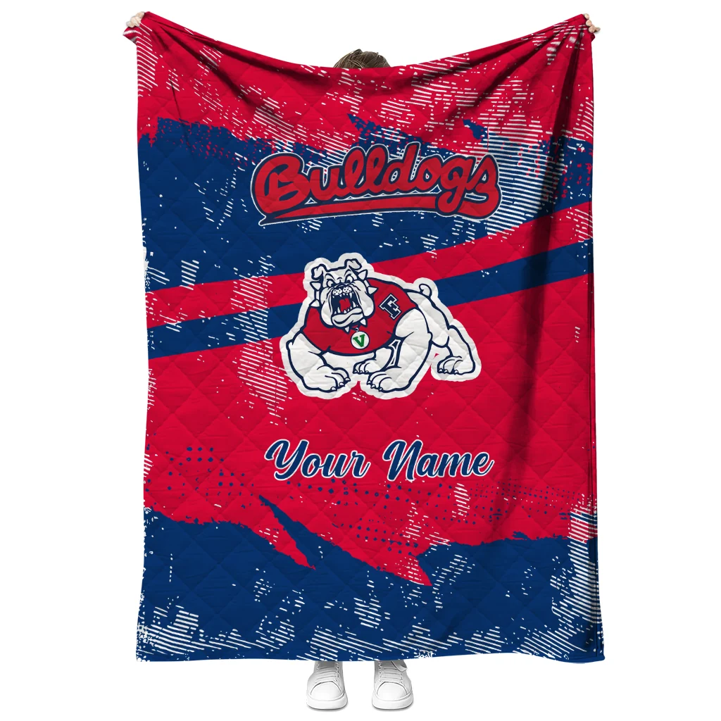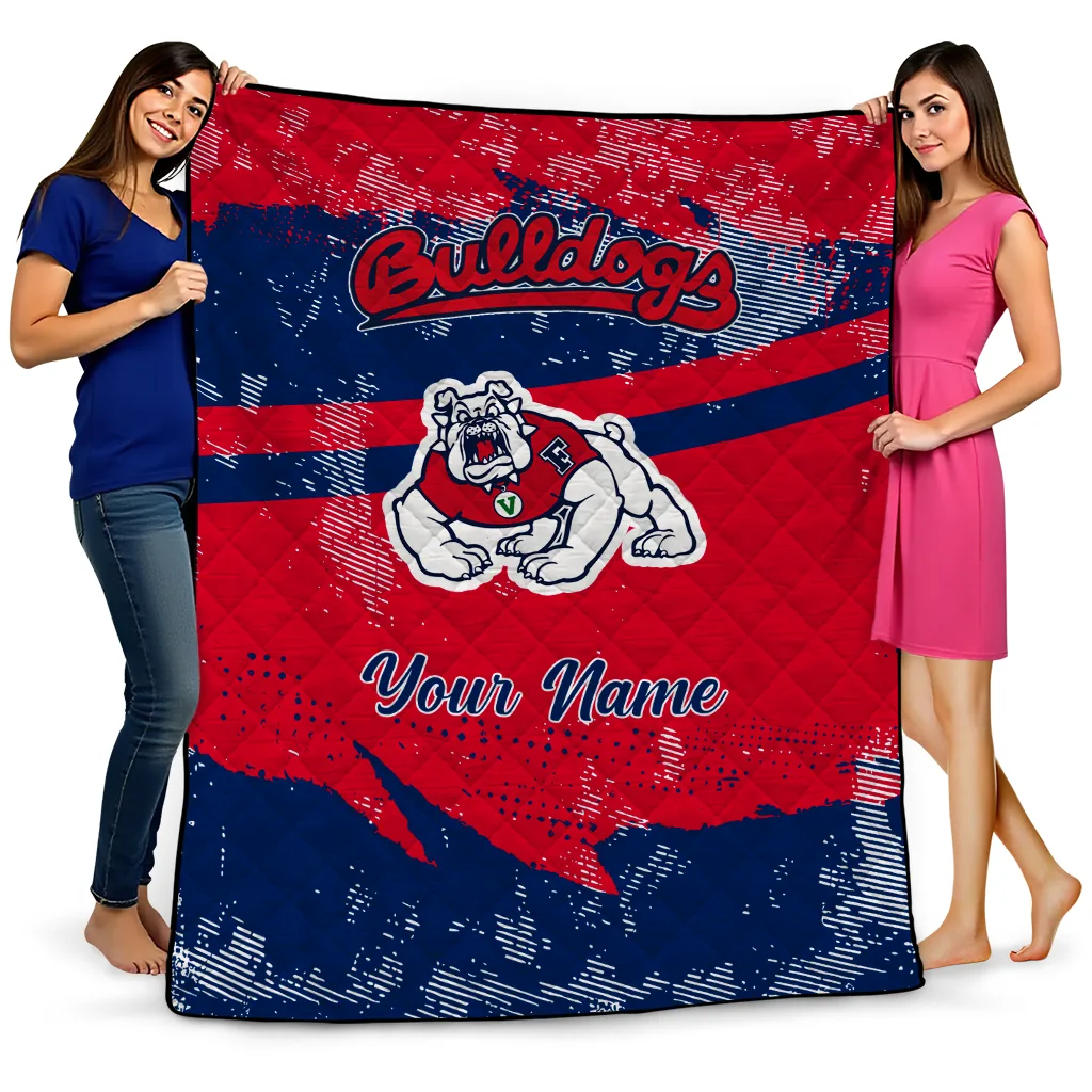 Personalized Fresno State Bulldogs Brushstroke Layers Red Quilt Blanket