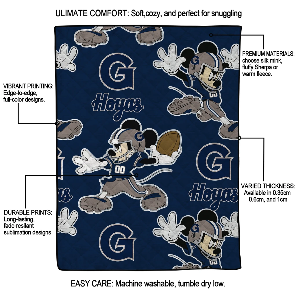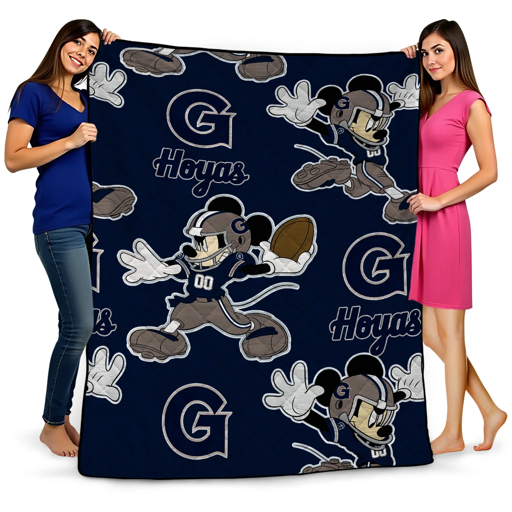 Personalized Georgetown Hoyas Mickey Football Blue Quilt Blanket
