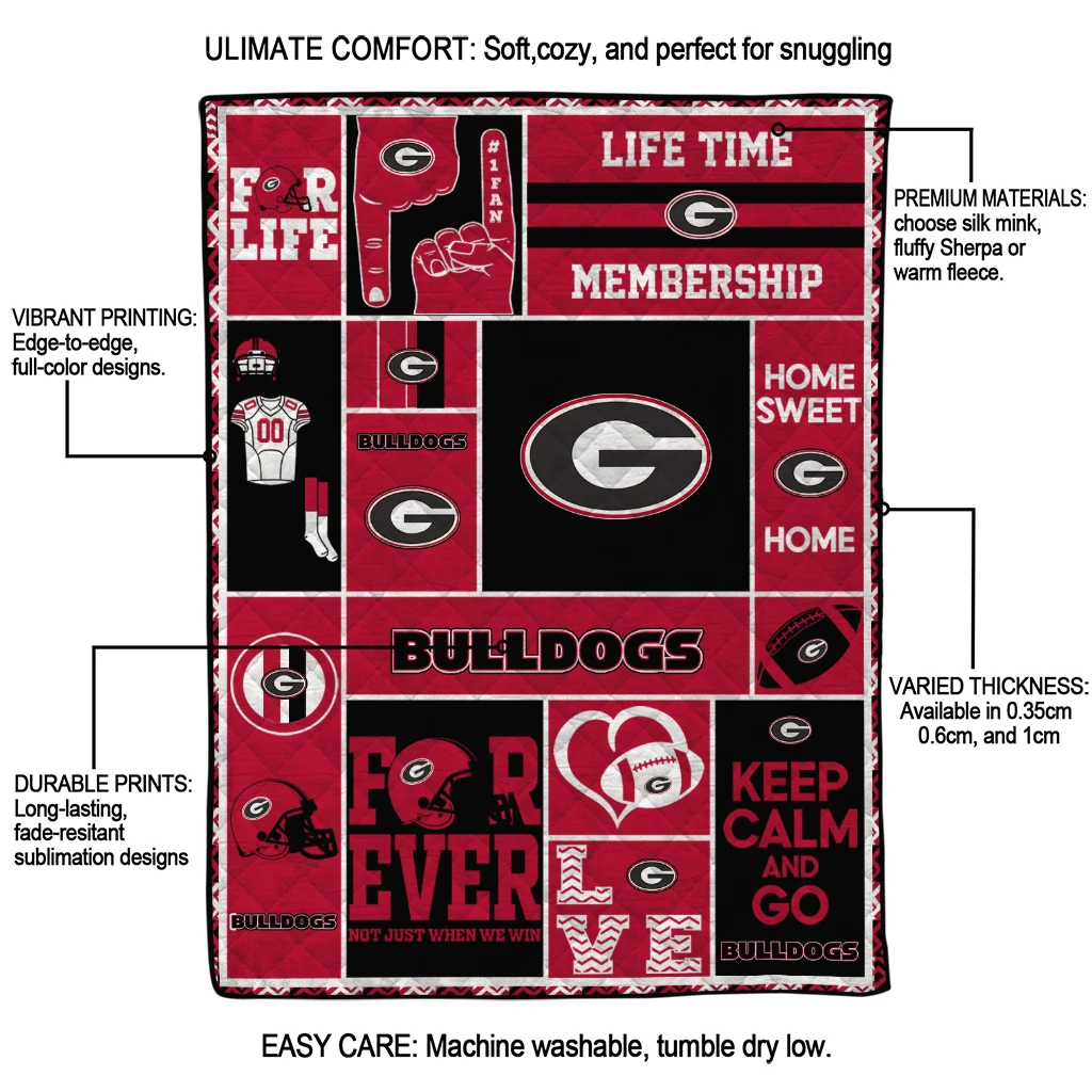 Personalized Georgia Bulldogs Helmet Passion Red Quilt Blanket
