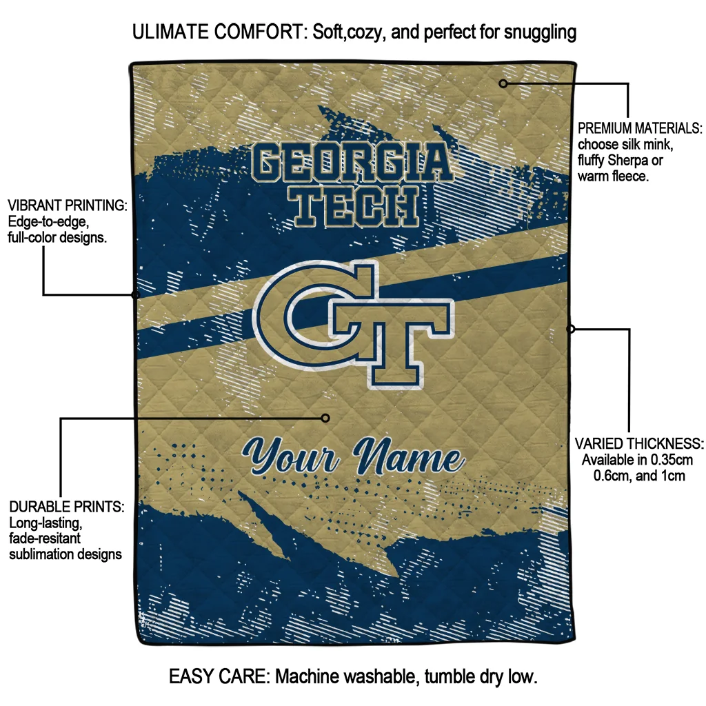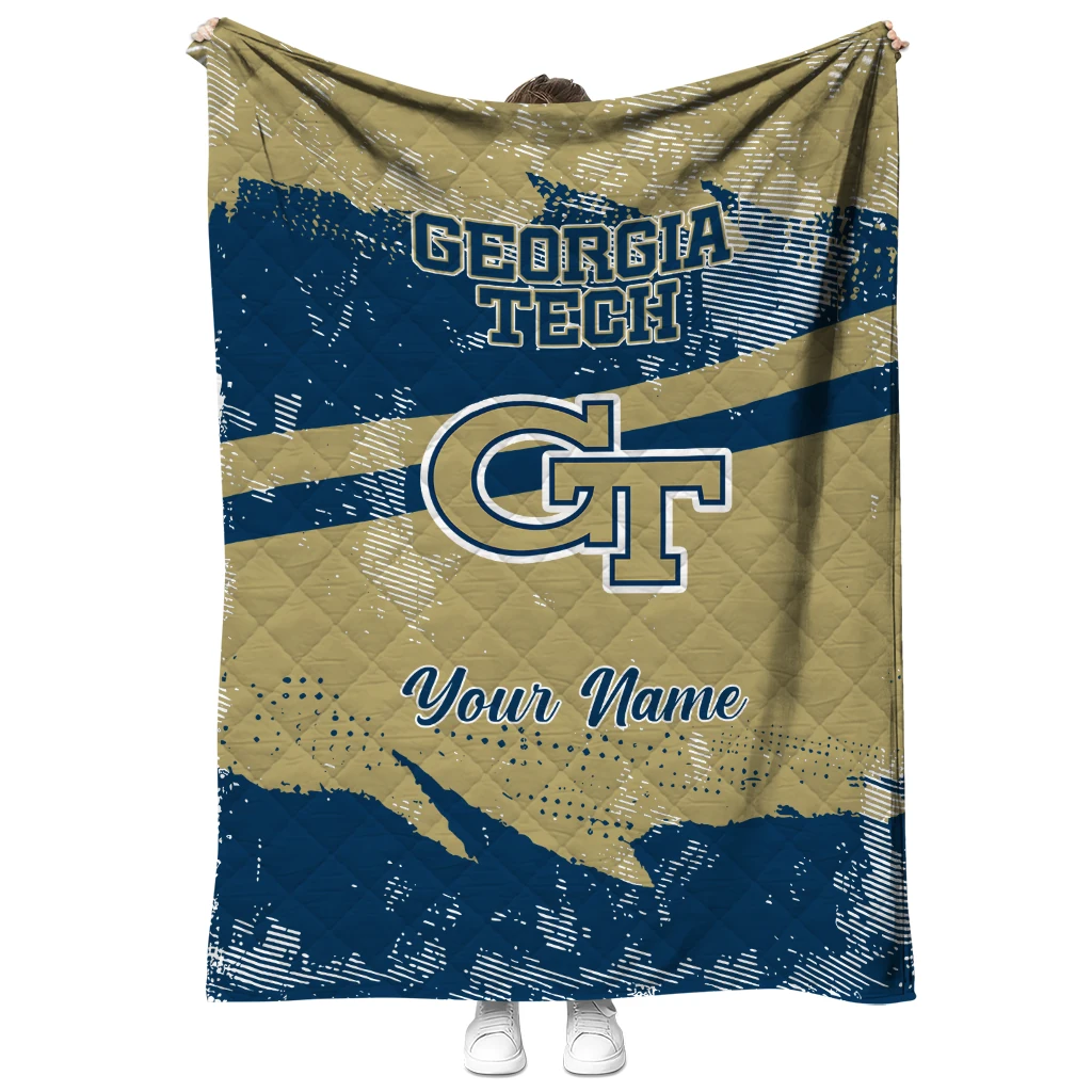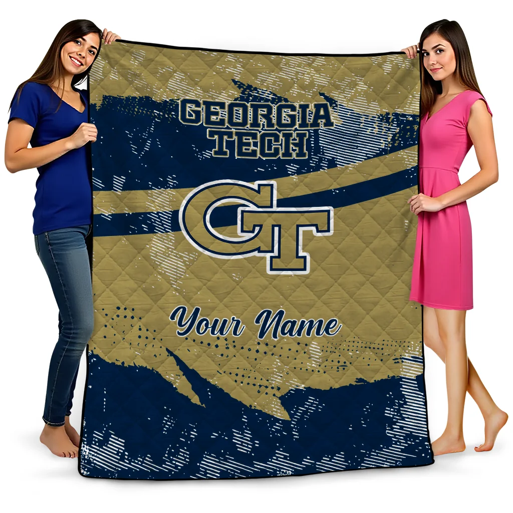 Personalized Georgia Tech Yellow Jackets Brushstroke Layers Gold Quilt Blanket