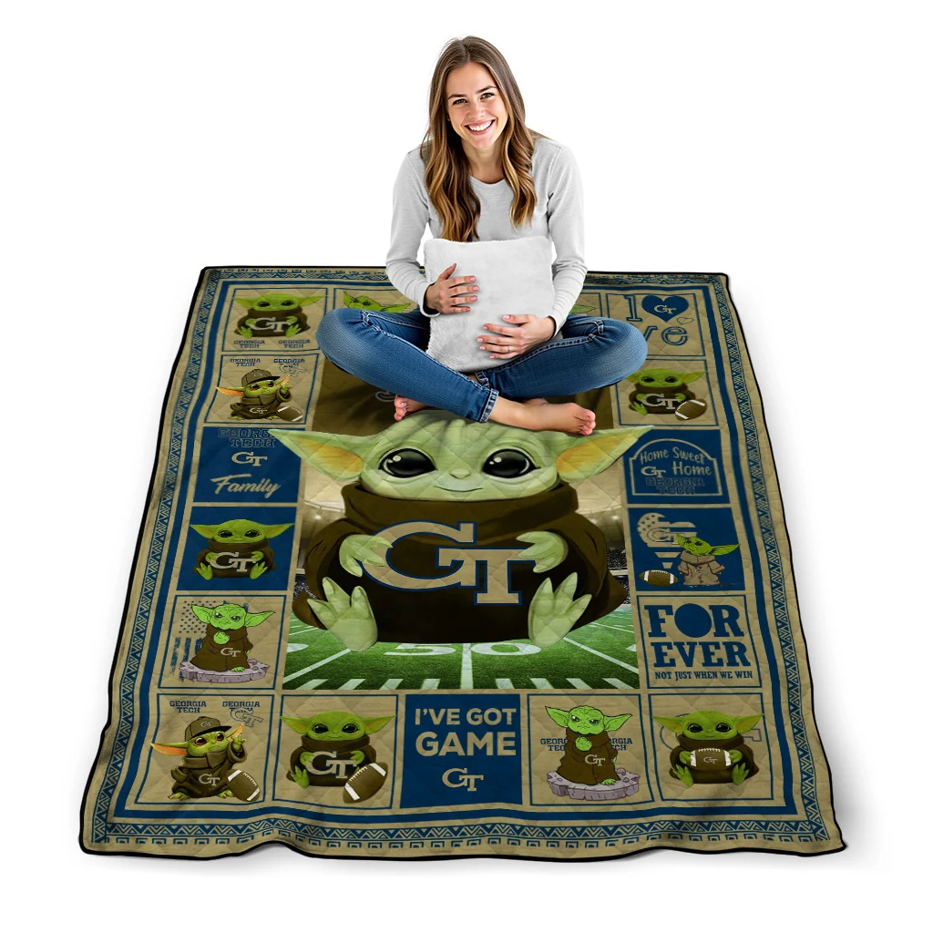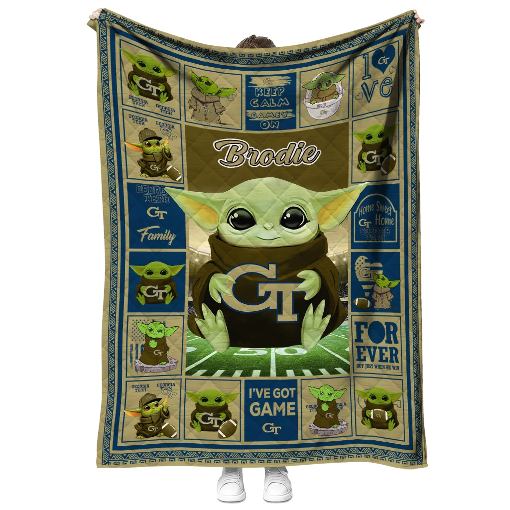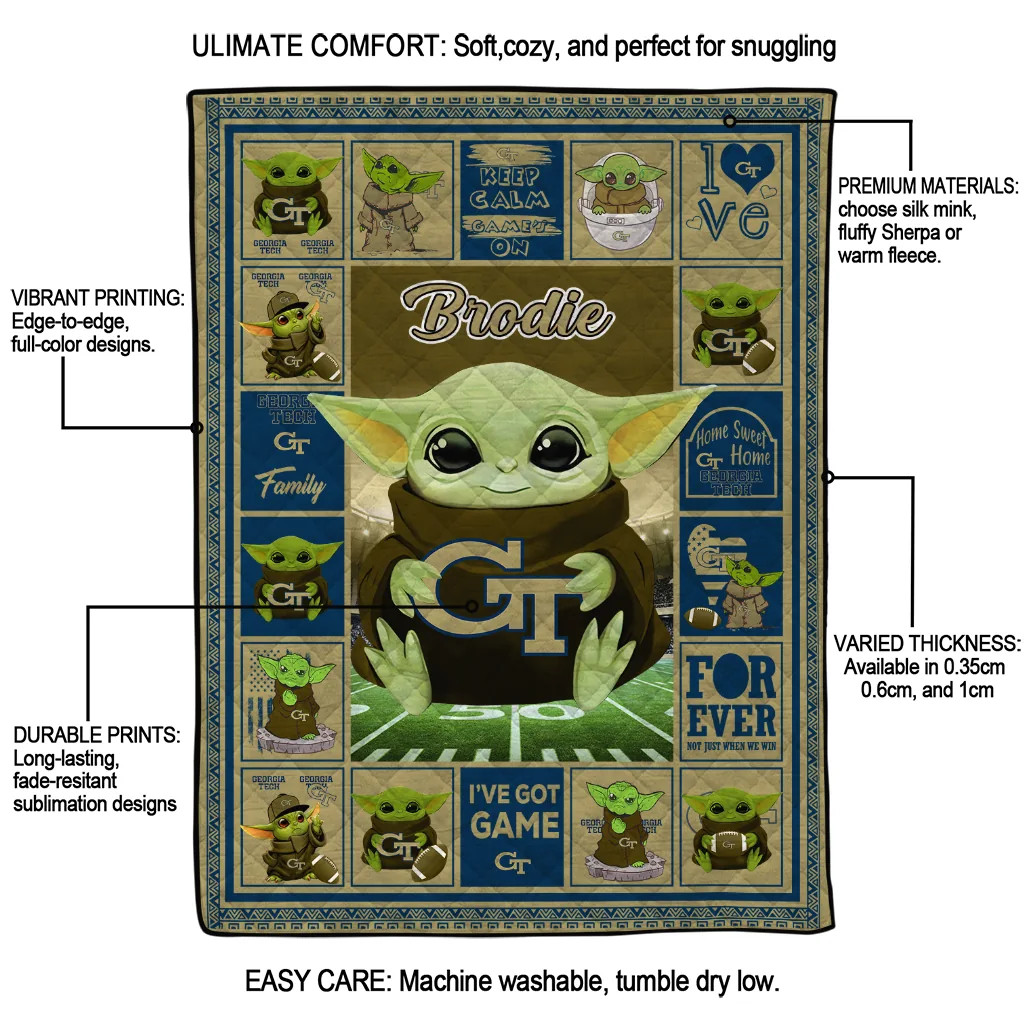 Personalized Georgia Tech Yellow Jackets Yody Baby Pattern Gold Quilt Blanket