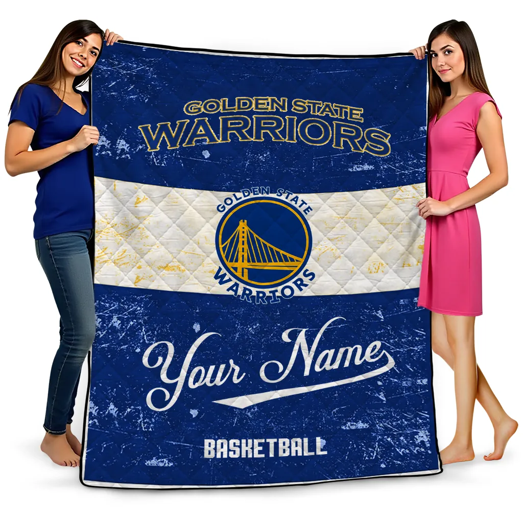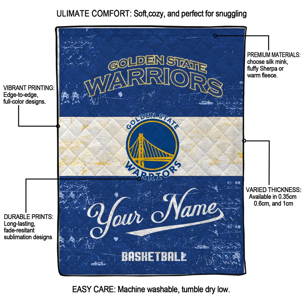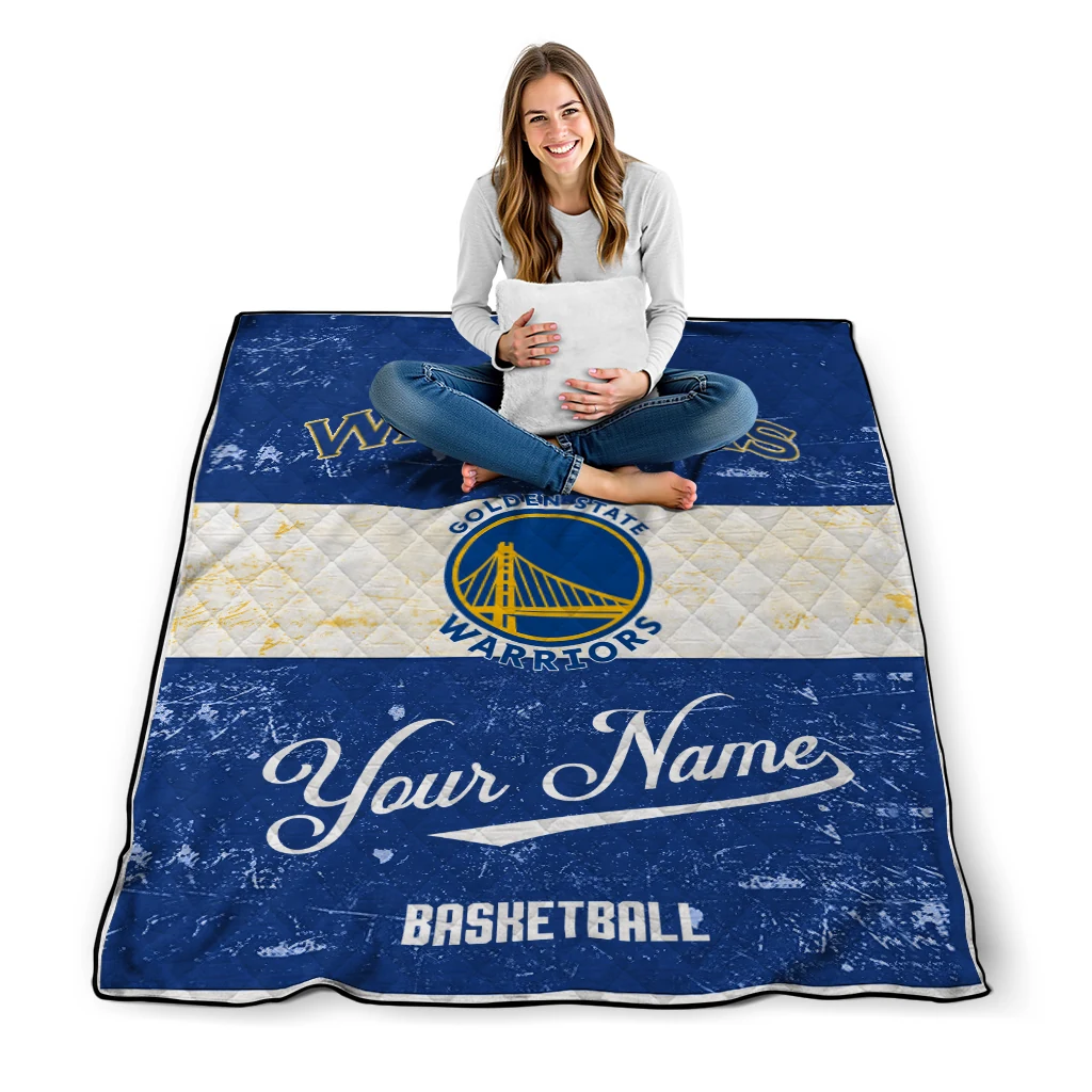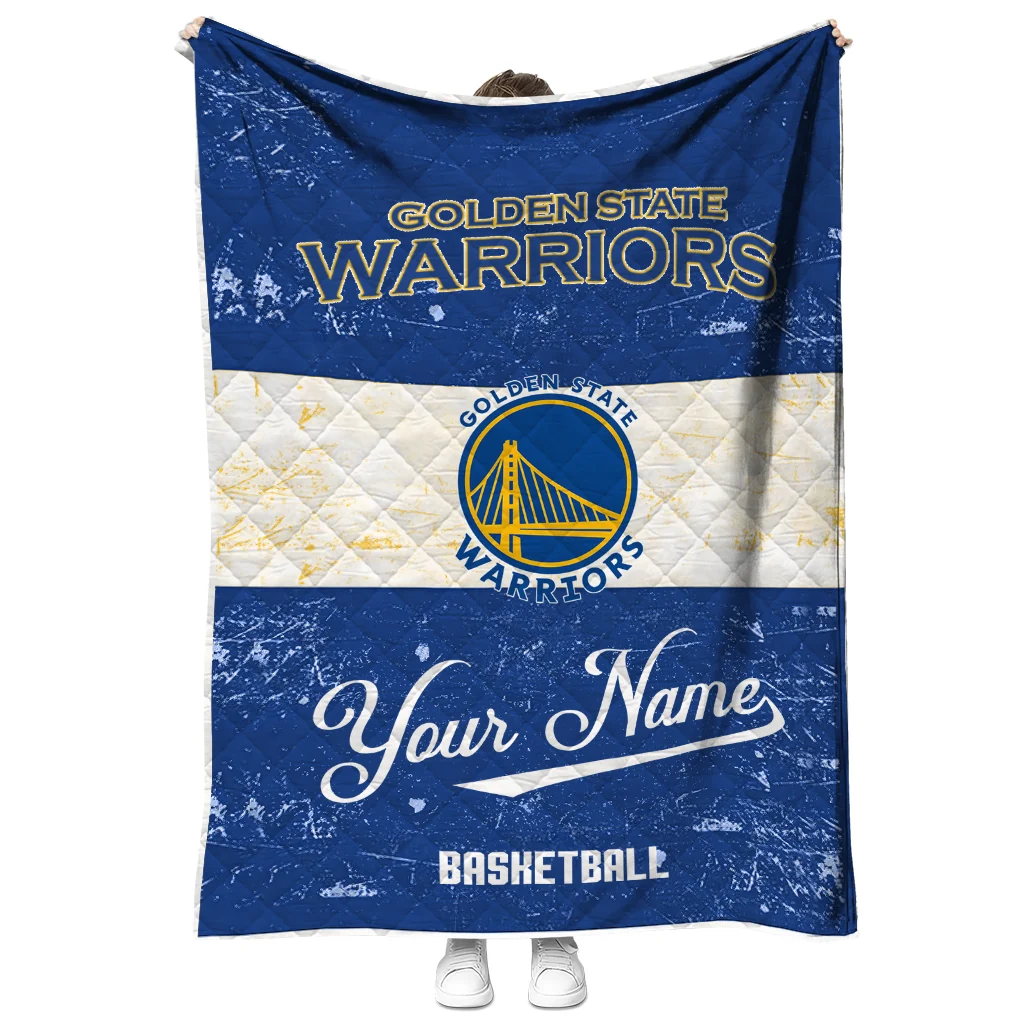 Personalized Golden State Warriors Helmet Fan Blue White Quilt Blanket