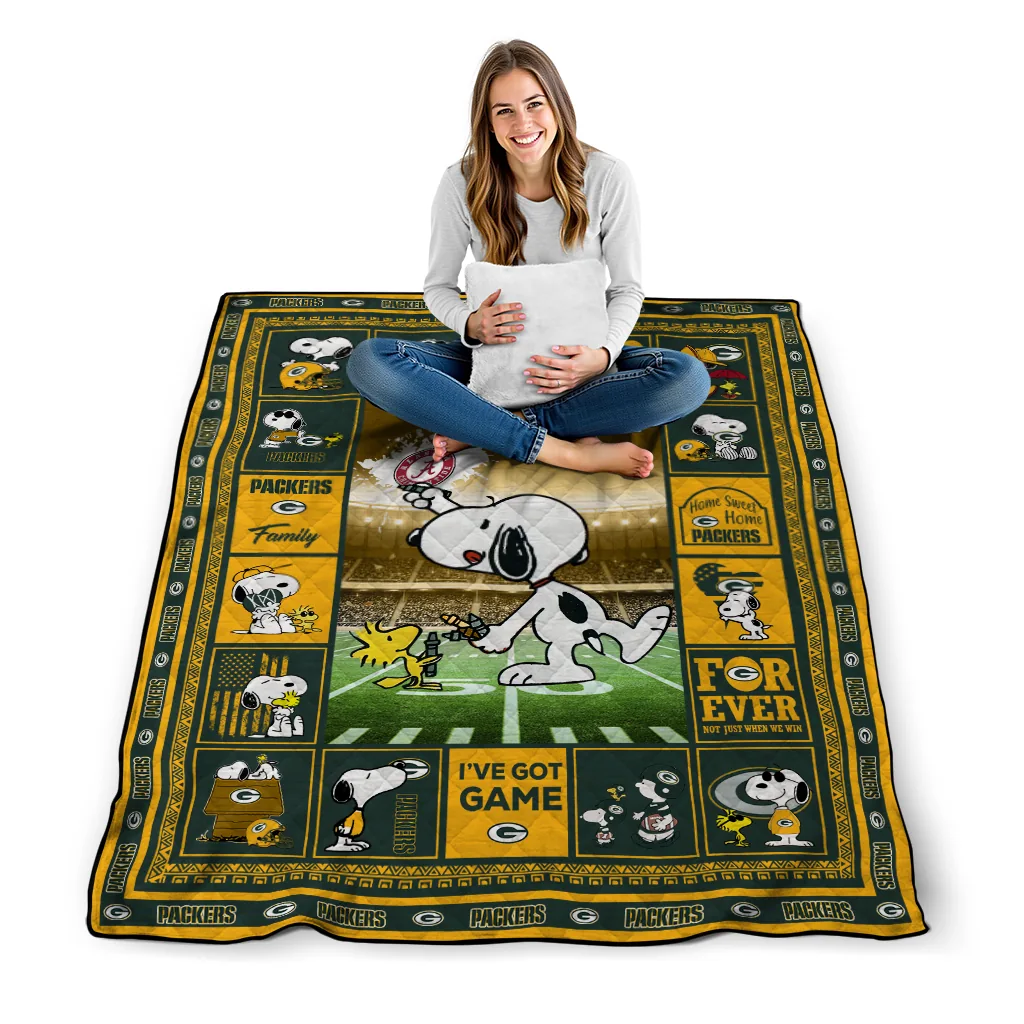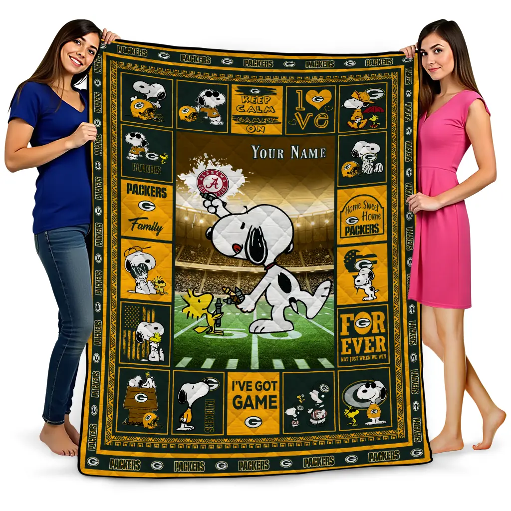 Personalized Green Bay Packers Snoopy Coach Green Quilt Blanket
