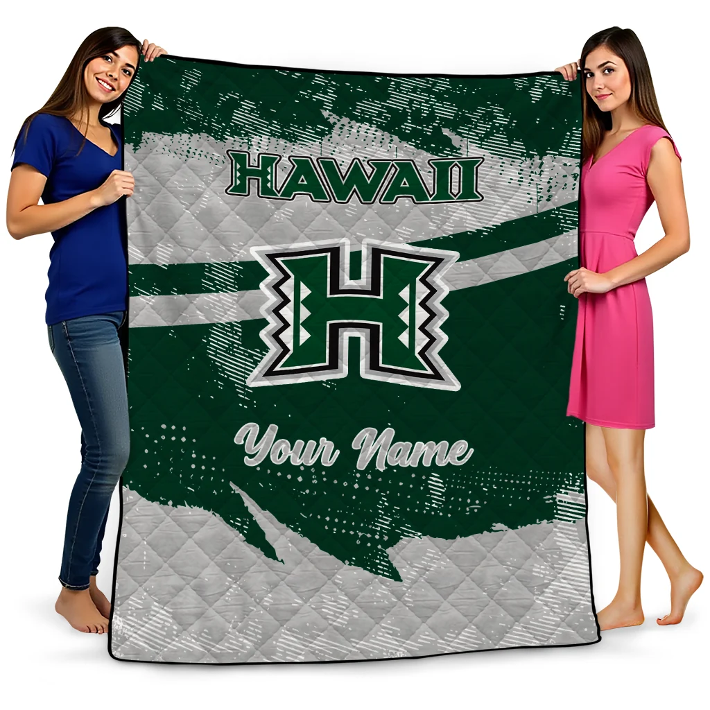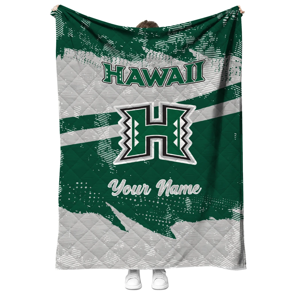Personalized Hawaii Rainbow Warriors Brushstroke Layers Green Quilt Blanket