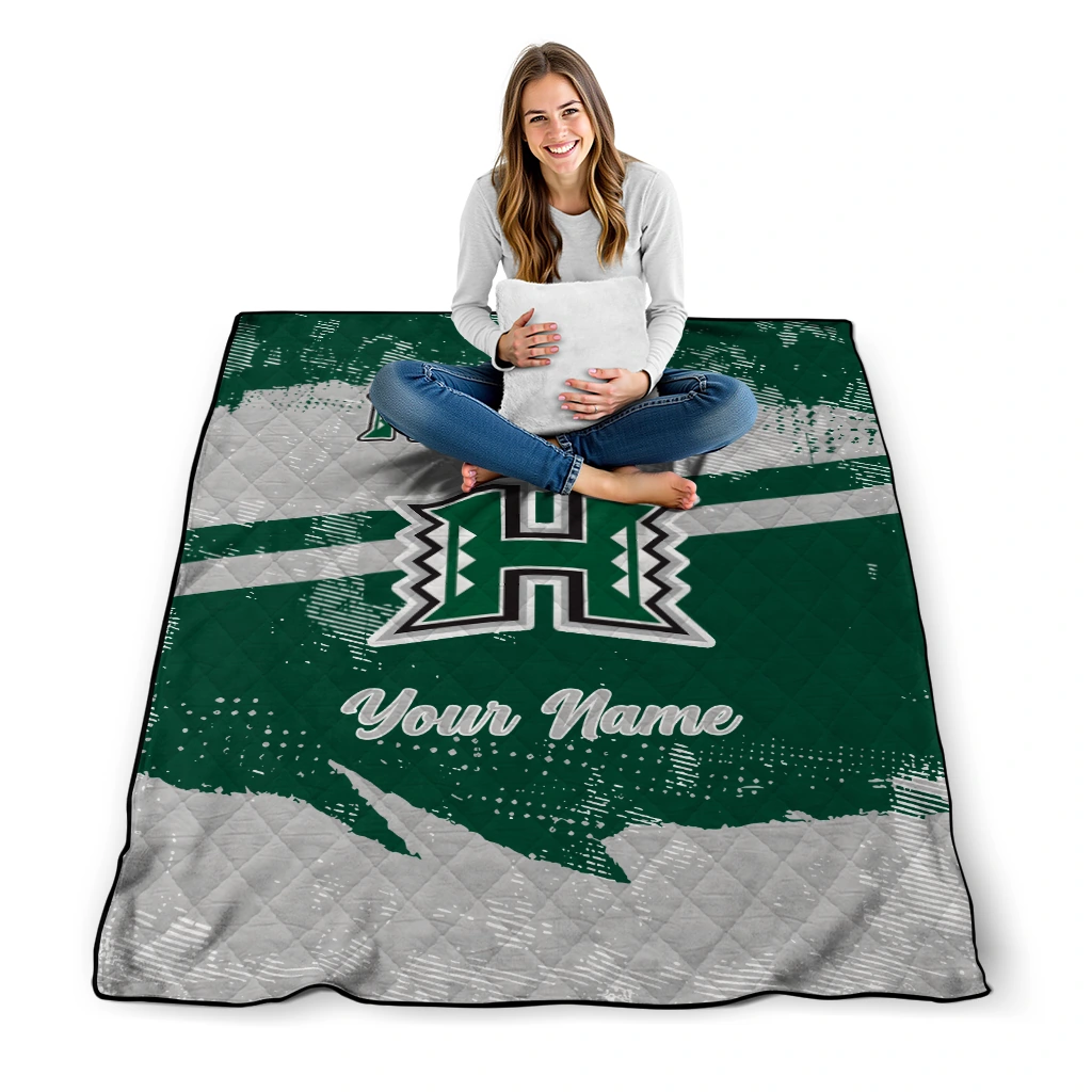 Wrap yourself in warmth and pride with the Personalized Hawaii Rainbow Warriors Brushstroke Layers Green Quilt Blanket from the Hawaii Rainbow Warriors Blankets collection at Yes That Blanket. Made from 100% premium quilting-weight polyester blended with a touch of microfiber, this quilt offers a smooth, soft finish you’ll love. Choose between two quilting styles—Stipple or Diagonal—and enjoy the comfort of a cotton-filled layer inside that adds extra coziness for every season. The border is available in classic black or white, giving your design a clean, timeless edge.