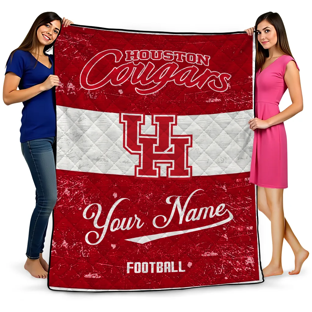 Wrap yourself in warmth and pride with the Personalized Houston Cougars Hibiscus Burst Red White Quilt Blanket from the Houston Cougars Blankets collection at Yes That Blanket. Made from 100% premium quilting-weight polyester blended with a touch of microfiber, this quilt offers a smooth, soft finish you’ll love. Choose between two quilting styles—Stipple or Diagonal—and enjoy the comfort of a cotton-filled layer inside that adds extra coziness for every season. The border is available in classic black or white, giving your design a clean, timeless edge.